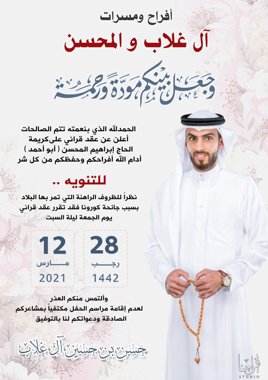 لنشر أخبار الأفراح والمواليد والمناسبات الإجتماعية في محافظة القطيف؛ يرجى التواصل عبر: