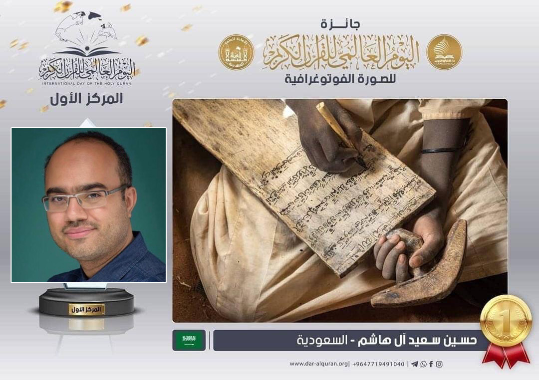 حصل حسين سعيد الهاشم على المركز الأول بجائزة اليوم العالمي للقرآن الكريم للصورة الفوتوغرافية «للفئة العامة» والتي ترعاها دار القرآن في العتبة الحسينية المقدسة بالعراق.