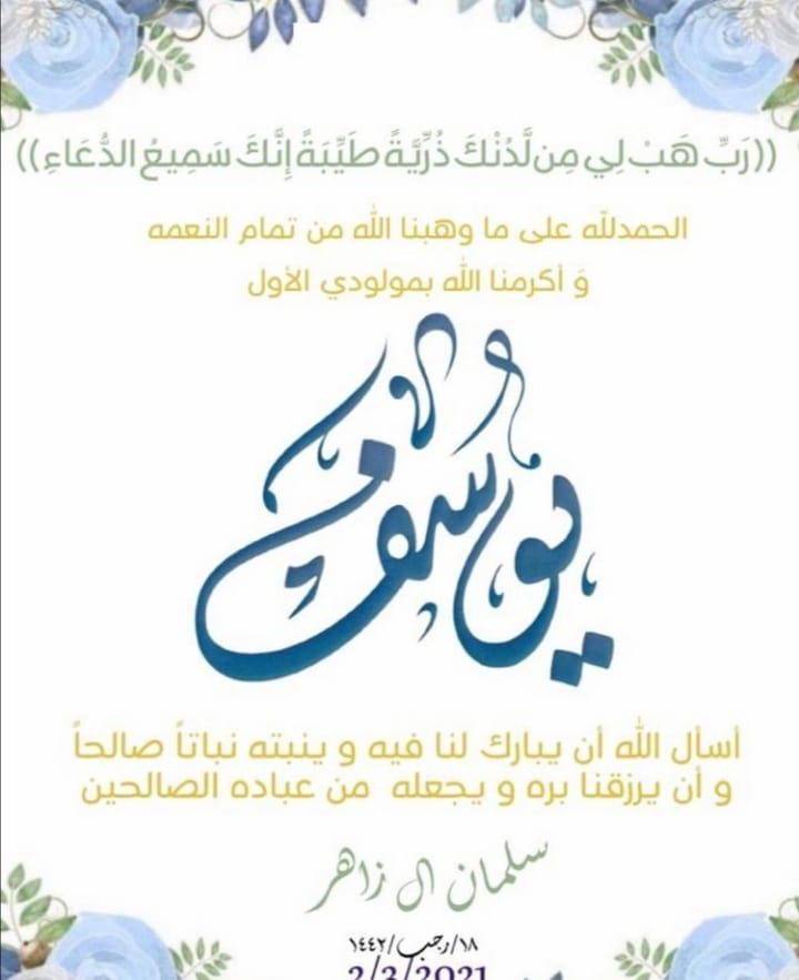 رُزق الشاب سلمان آل زاهر بمولود اتفق وحرمه على تسميته «يوسف».