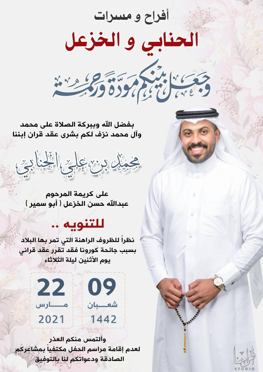 لنشر أخبار الأفراح والمواليد والمناسبات الإجتماعية في محافظة القطيف؛ يرجى التواصل عبر:
