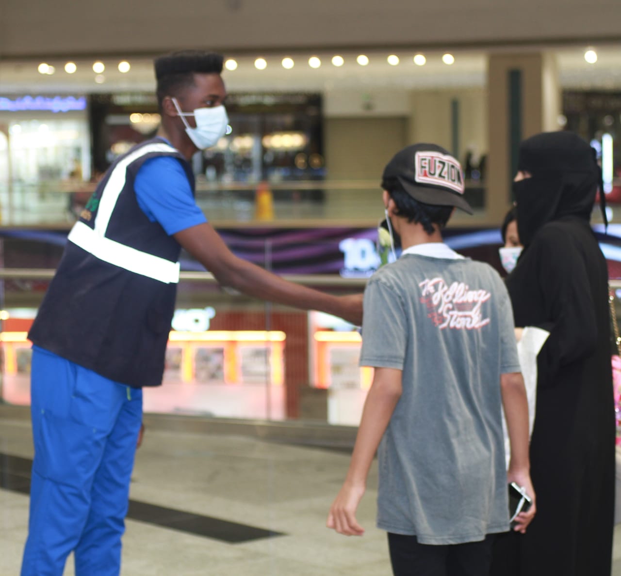 وأوضح أن الفريق يواصل جهوده في مختلف القطاعات في مواجهة هذه الجائحة والعمل على منع انتشار الفيروس من خلال منظومة متكاملة من الأعمال الميدانية والرقابية والتطوعية التي من ضمنها تفعيل هذه المبادرة في، علاوةً على تفعيلها مسبقاً في المجمعات التجارية للإسهام والحد من انتشار الفايروس من خلال توعية المتسوقين بالإجراءات الاحترازية وتطبيق مفهوم التباعد الاجتماعي فعلياً وأخذ اللقاح.