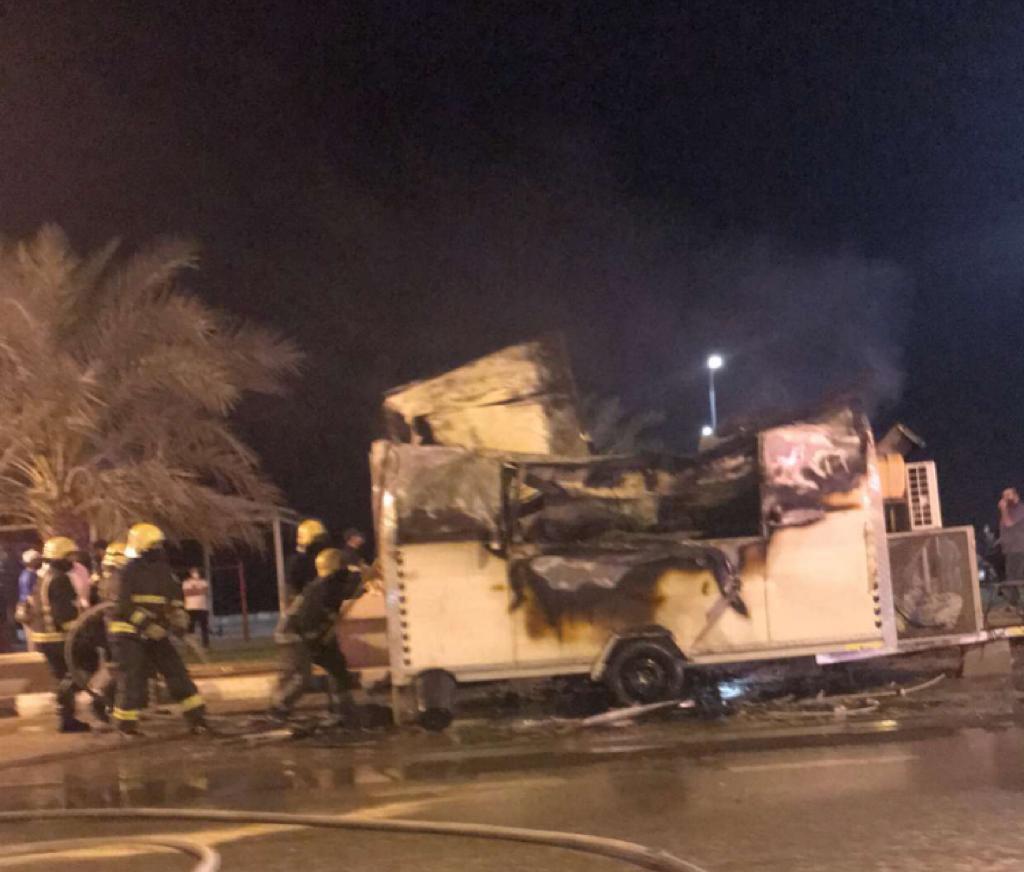 السيطرة على حريق عربة أطعمة في كورنيش الغدير