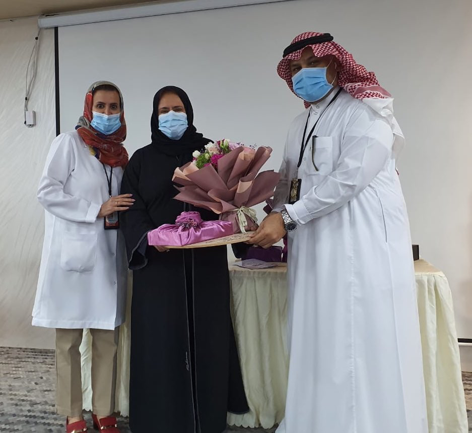 برعاية الدكتور رياض الموسى كرم مركز طب الأسنان بمستشفى القطيف المركزي الدكتورة نادية شميريخ والدكتورة نادية الصدير نظير ما بذلوه من عطاء مميز طيلة فترة عملهم في مركز طب الاسنان التخصصي.