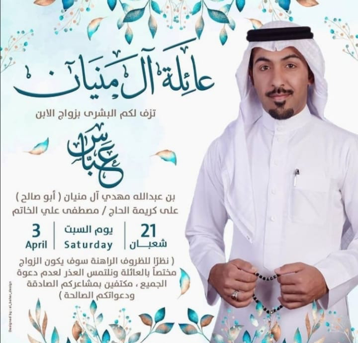 احتفلت عائلة آل منيان والخاتم في سيهات مساء يوم السبت بزفاف الشاب عباس عبدالله مهدي آل منيان على كريمة الحاج مصطفى علي الخاتم وسط فرحة الأهل والأصدقاء ومحبي العريسين.
