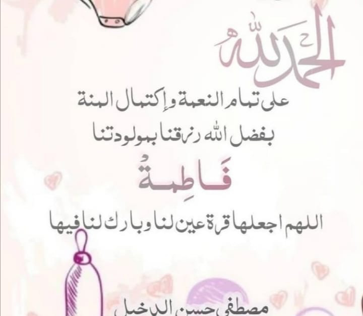 رُزق الشاب مصطفى حسن الدخيل بمولودة اتفق وحرمه على تسميتها «فاطمة».