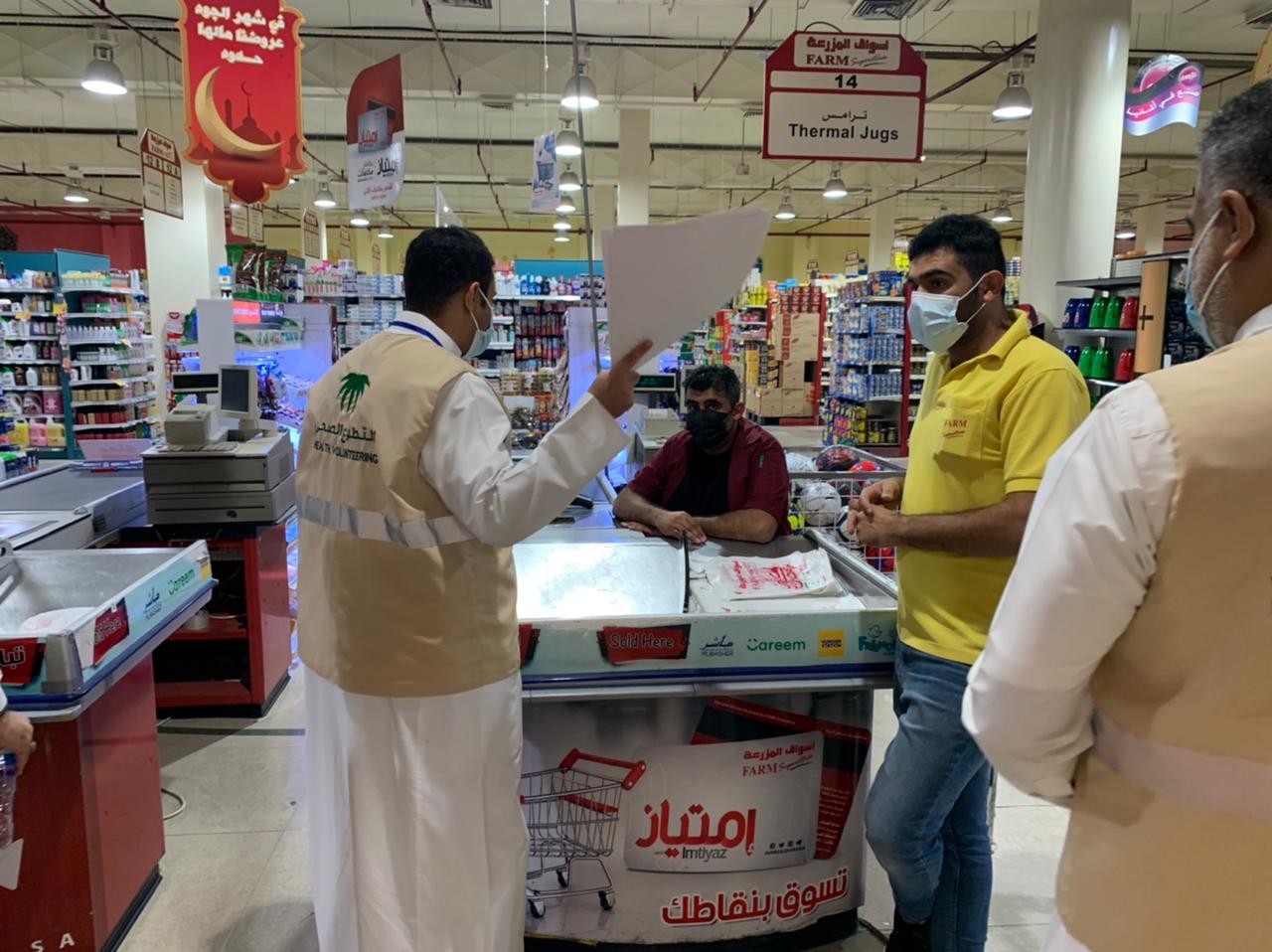 ونفذت اللجان جولات ميدانية لتوعية المنشآت والمجتمع في محافظة القطيف لتوعية أصحاب المنشآت والعاملين فيها، والتأكيد على الالتزام بتطبيق الإجراءات الاحترازية في المنشآت المتعلقة بالصحة العامة في المطاعم والمقاهي والمحلات التجارية من خلال تطبيق ”توكلنا“ وأيضا فحص الحرارة والتباعد وتطبيق العدد المسموح فيه حسب مساحة كل منشأة.