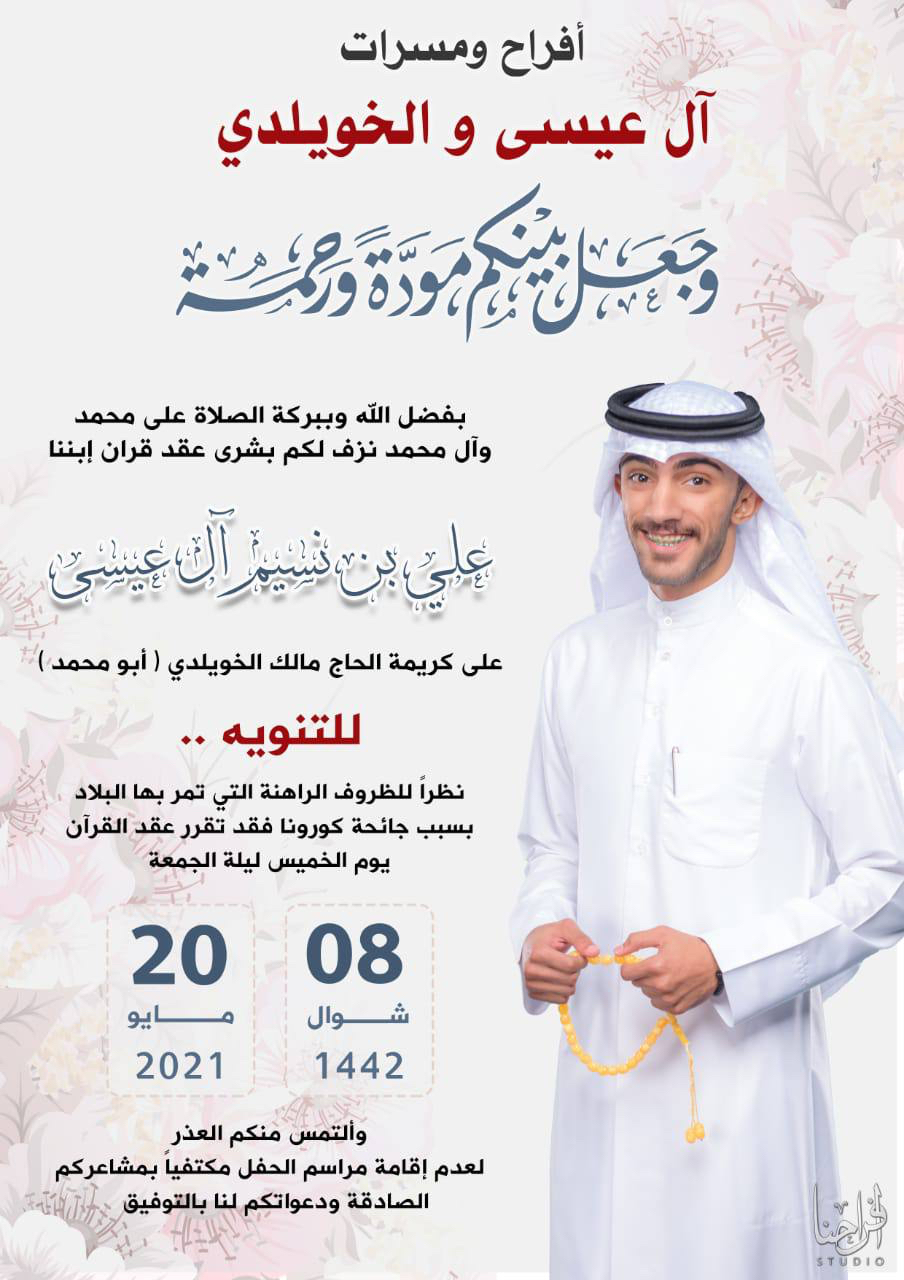 لنشر أخبار الأفراح والمواليد والمناسبات الإجتماعية في محافظة القطيف؛ يرجى التواصل عبر: