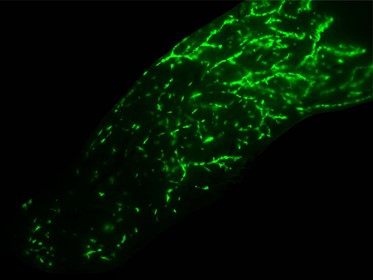 صورة مجهرية لداخل الغدة الثديية للفأر محقونة في داخل قنوات الحليب بخلايا ظهارية للثدي البشري طبيعية.