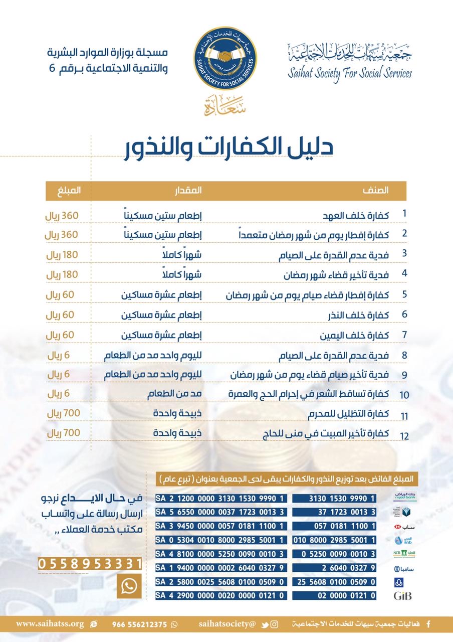 أطلقت جمعية سيهات للخدمات الاجتماعية مبادرة استقبال الكفارات عبر حساباتها البنكية.