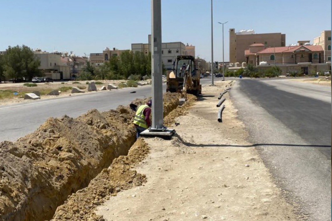 بدأت بلدية محافظة القطيف، تركيب أعمدة إنارة بمخطط الدكاترة في العوامية.