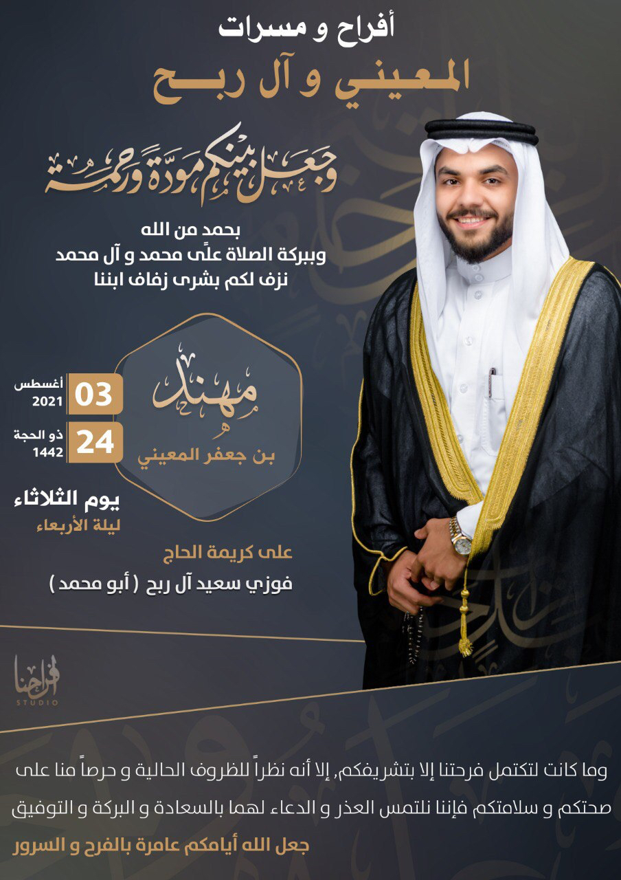 لنشر أخبار الأفراح والمواليد والمناسبات الإجتماعية في محافظة القطيف؛ يرجى التواصل عبر: