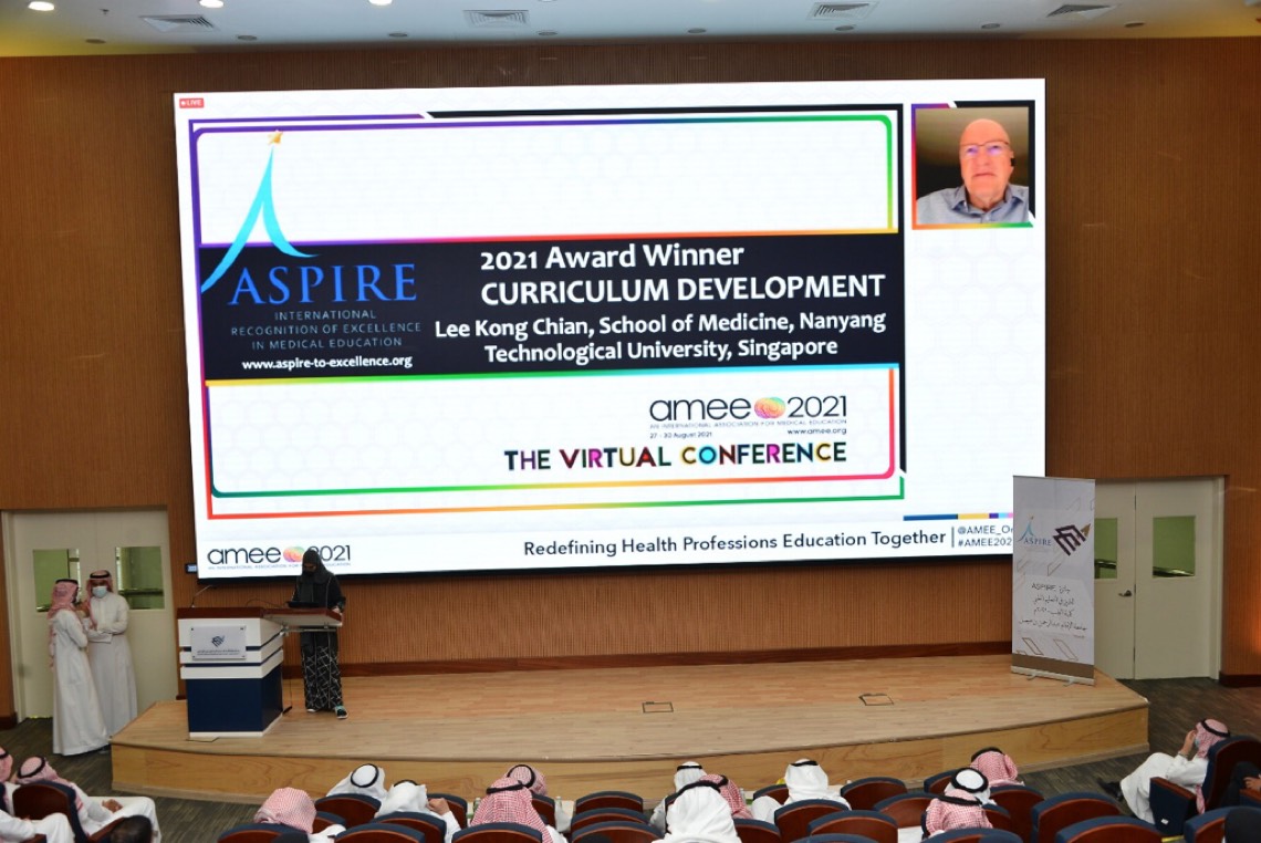 وأضاف: ”وجدنا أنه يوجد لدينا ما يثبت التميز في دمج واشراك الطلبة كمحور ممكن لترشح الكلية به، وتم تشكيل لجنة للعمل على هذا المحور“، موضحًا أن جائزة Aspire جائزة دولية مرموقة للتميز في الكليات الصحية حول العالم تقدمها الجمعية الدولية للتعليم الطبي «AMEE» تأسست في عام 1972 في كوبنهاجن بالدانمارك كمنظمة أوروبية ثم صارت منظمة دولية، تمنح الجائزة سنويا لكلية أو جامعة في واحد أو مجموع من فروع الجائزة السبعة.