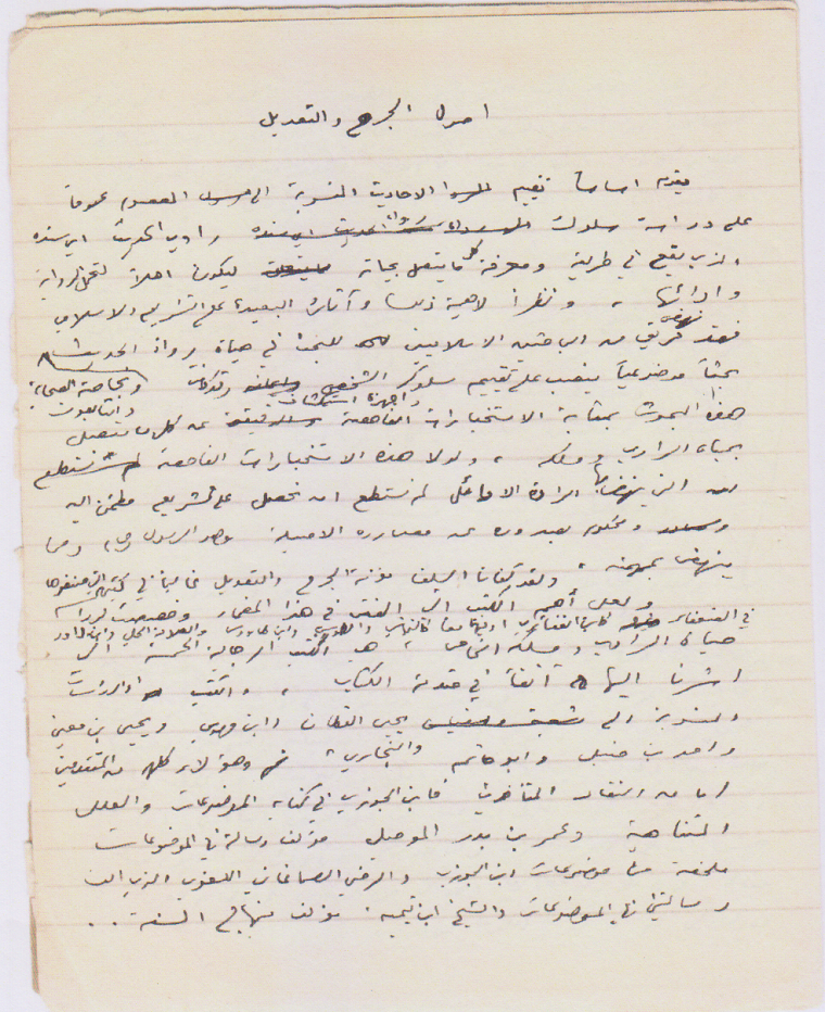 صورة لأحد الموضوعات التي أضفاها إلى كتابه أصول الحديث المقارن في طبعته التي أعدها للنشر، ورحل قبل أن يراها، وهو بخطه الشريف