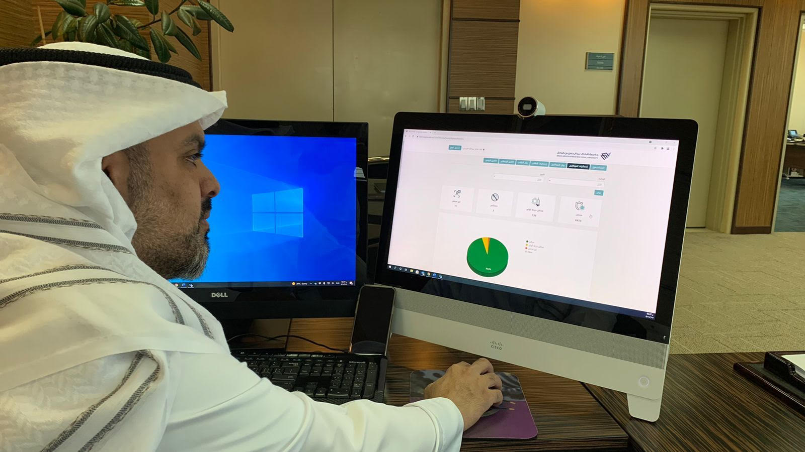 ولفت العيسى إلى أن النظام يوفر واجهة سهلة لمعرفة كل الاحصائيات عن حالات تلقي اللقاح في الجامعة بشكل عام، مضيفًا: ”لدينا اعداد تصل الى 40 ألف من منسوبي الجامعة وكان التحديث والمتابعة سلسة بشكل كبير ويستطيع رئيس الجامعة الدخول على النظام وكذلك أعضاء اللجنة المشرفة على العودة الآمنة ومتابعة الأرقام والاحصائيات على كافة المستويات بكافة التفاصيل والتخصيص لكل فئة سواء الطلاب والهيئة التعليمية والإدارية وتفصيل بشكل عام“.