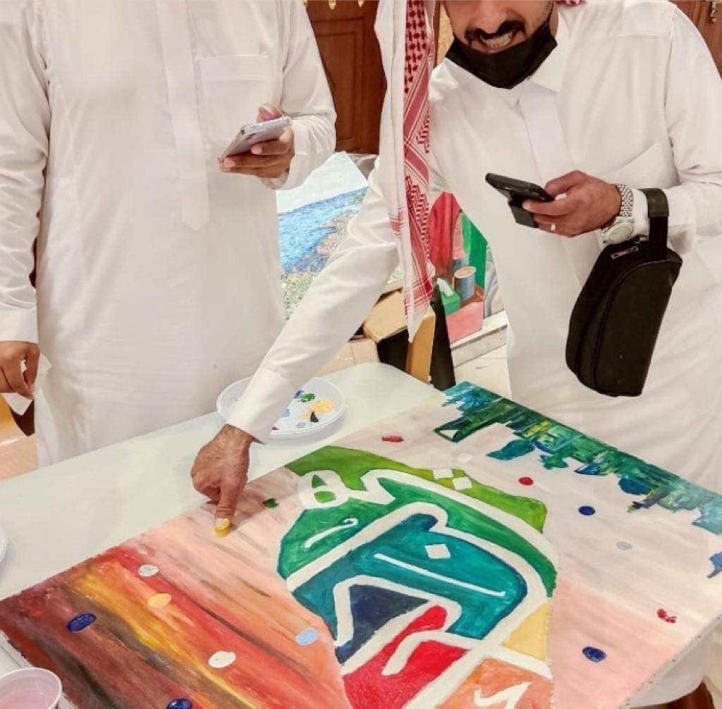 كما تضمنت الفعالية إقامة ورشة تحت عنوان ”هي لنا دار“ قدمها الفنان محمد العلياني وتوجت بلوحة فنية تضمن بصمات بعض الحضور زينت الواجهة الرئيسية لمجمع الحياة بلازا بالدمام.