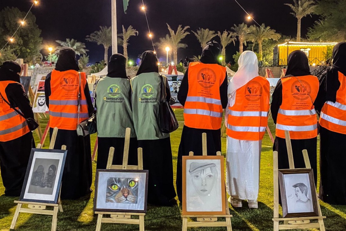 جاء ذلك من خلال قسم الفنون التشكيلية بإشراف الفنانة مريم القنبر، وقائد المجموعة هلال العيسى، بمدينة جواثا السياحية.