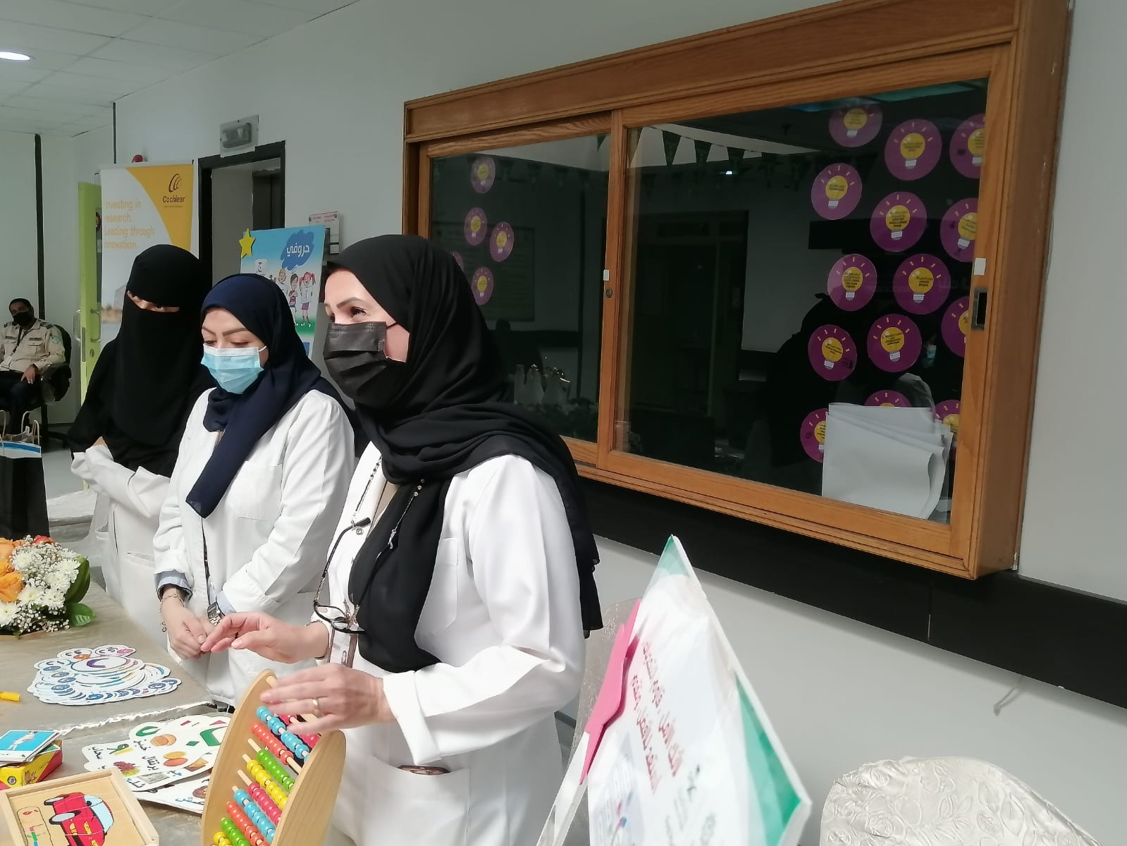 نظم مستشفى القطيف المركزي ومراكز الرعاية التابعة له، فعالية في بهو المستشفى، للتعريف باضطرابات النطق والتخاطب.