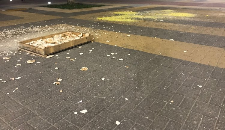 ولاحظ قاطنو الحي مؤخرا نثر أشخاص بصورة متكررة لبقايا الأطعمة وسط الميدان الرئيسي بذريعة إطعام الطيور.