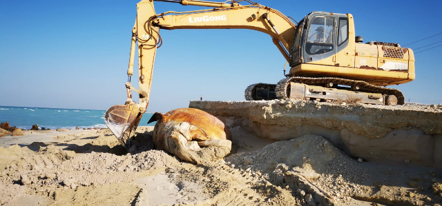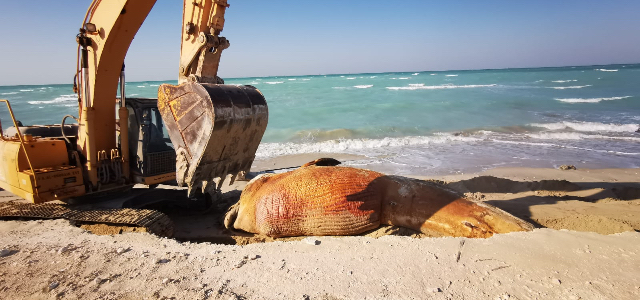 انهاء عملية دفن ثاني أطول حوت نافق بسواحل المملكة