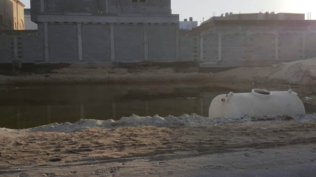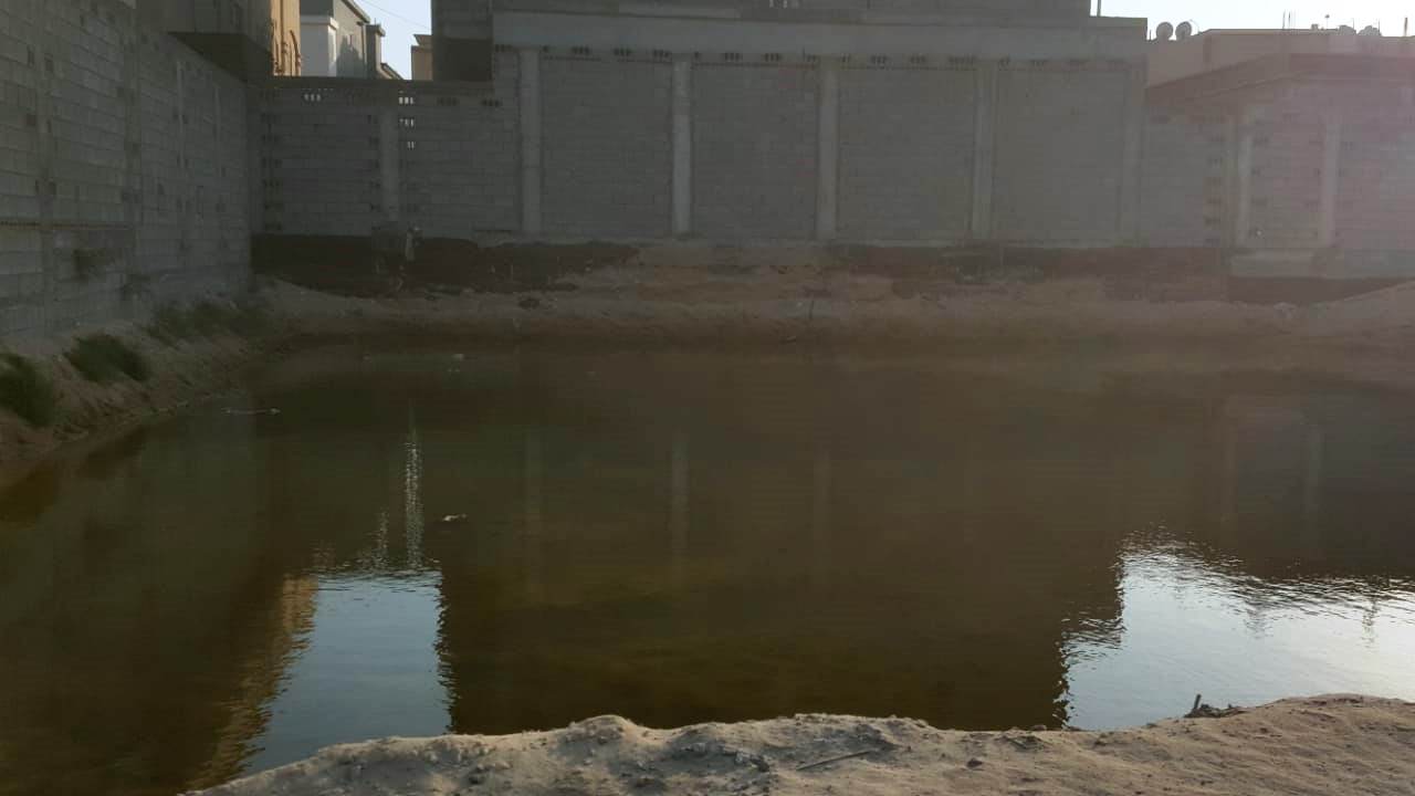 تذمر ساكنو مخطط الروضة بمدينة سيهات من تجمع مياه في أرض خالية بالقرب من بيوتهم.