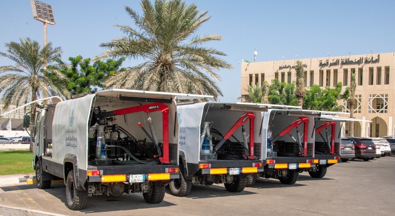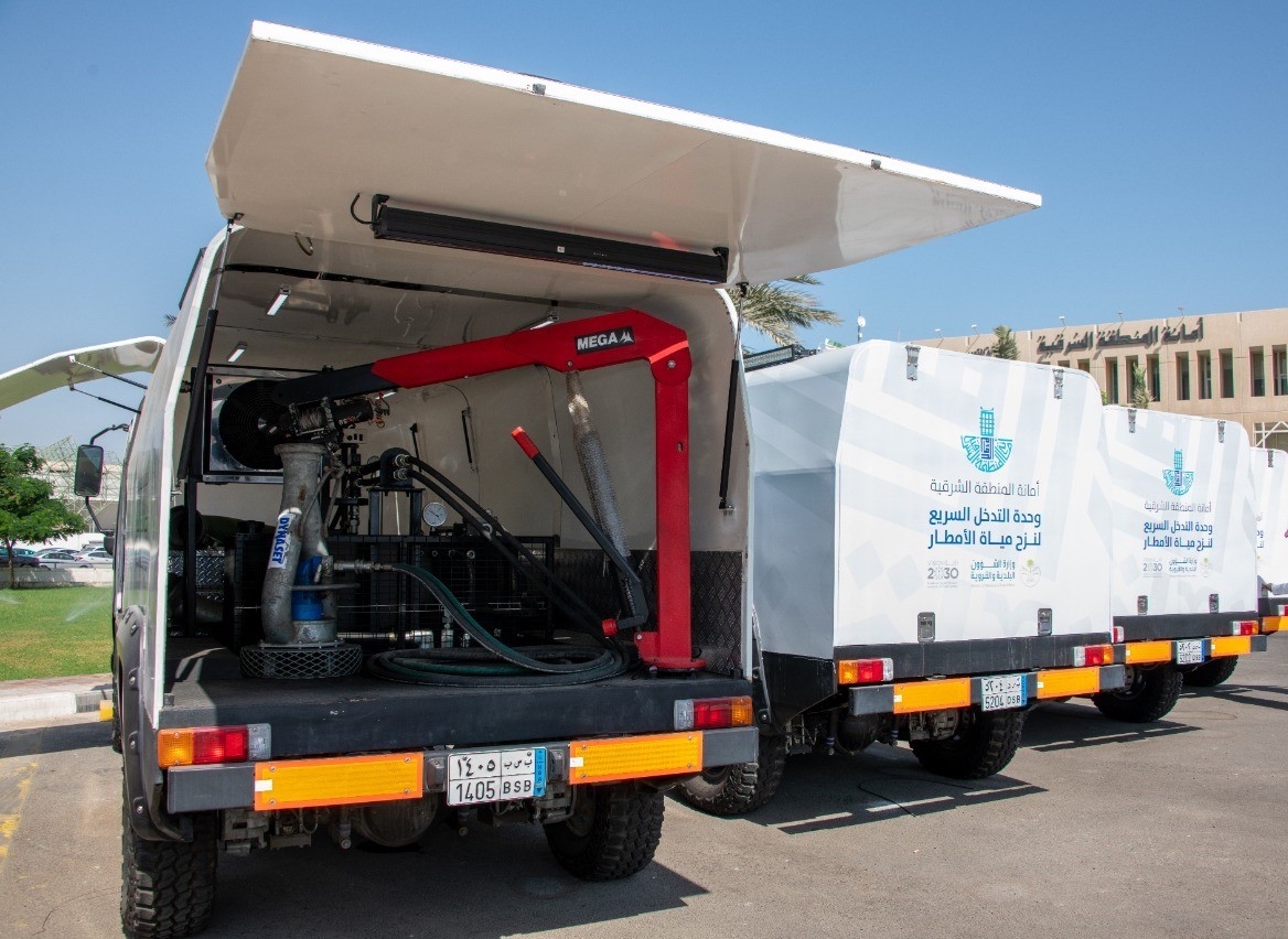 رفعت أمانة المنطقة الشرقية عدد معداتها ذات التقنية العالية والمتطورة والمستخدمة في نزح مياه الأمطار، وذلك بإضافة سبع معدات جديدة مزودة بتقنيات عالية.