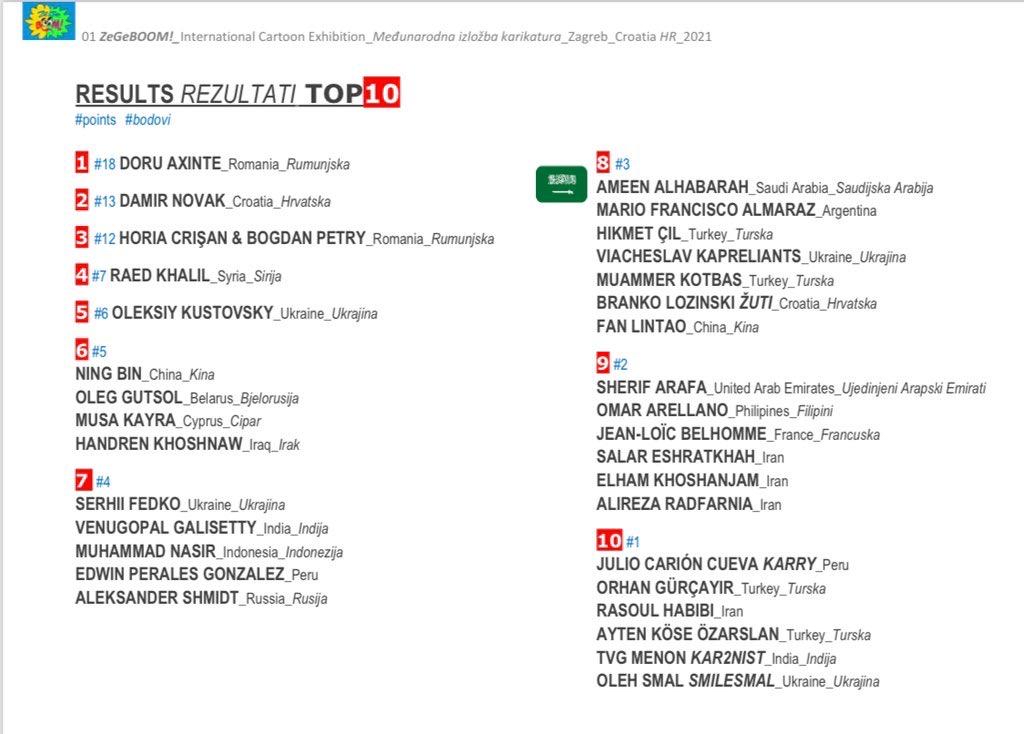 حصلت لوحة رسام الكاريكاتير في ”جهينة الإخبارية“ الزميل أمين الحباره على جائزة الأفضل، بين عشرة أعمال في معرض الكارتون الدولي الأول في زغرب / زي جي بووم في كرواتيا 2021 حول موضوع الزلازل.