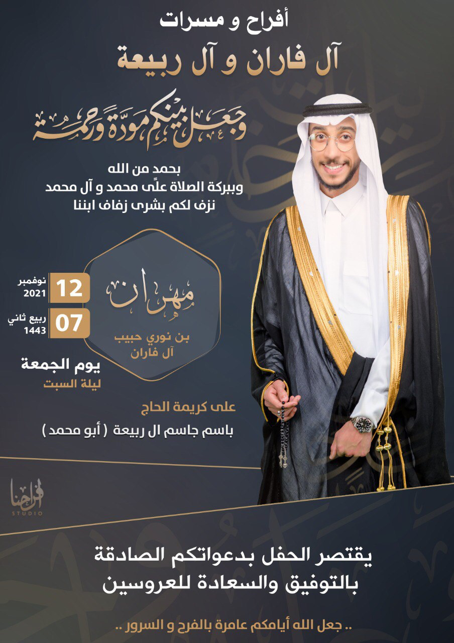 لنشر أخبار الأفراح والمواليد والمناسبات الإجتماعية في محافظة القطيف؛ يرجى التواصل عبر: