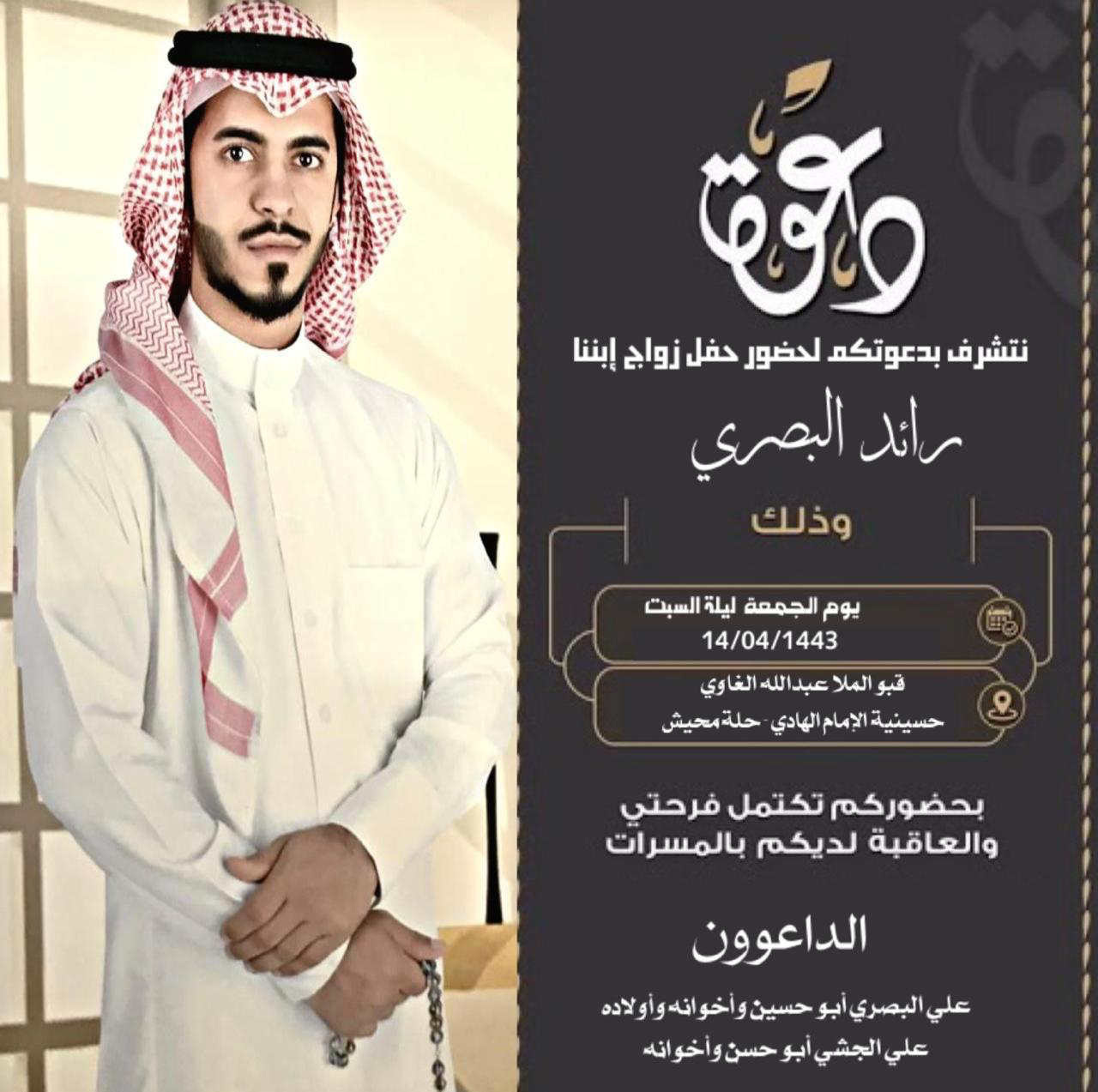 تحتفل عائلة البصري والجشي في حلة محيش مساء يوم الجمعة بزفاف الشاب رائد علي البصري على كريمة الحاج علي الجشي في حسينية الإمام الهادي بالحلة وسط فرحة الأهل والأصدقاء ومحبي العريسين.