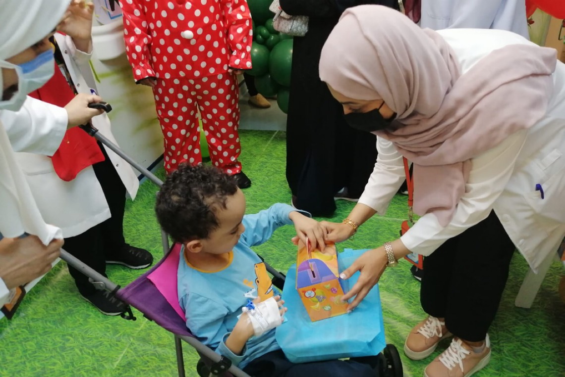 وتضمنت تقديم الهدايا للأطفال والرسم على الوجه مما ادخل البهجة والسرور على الاطفال المنومين.