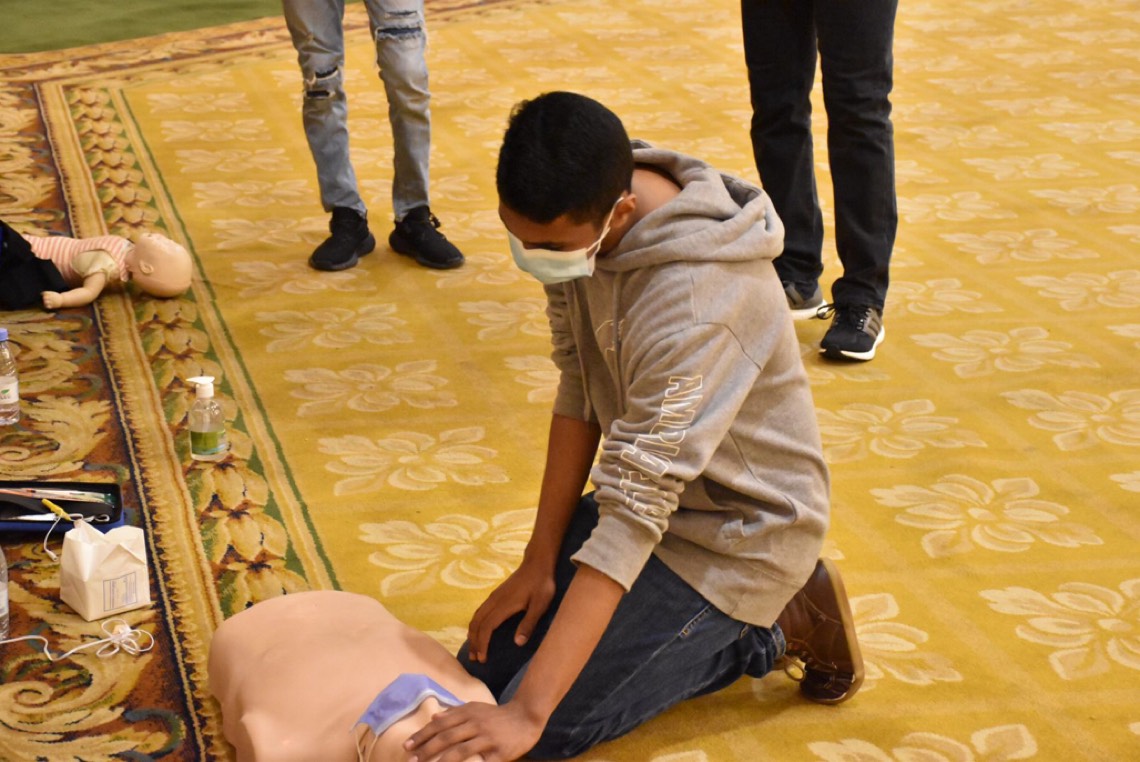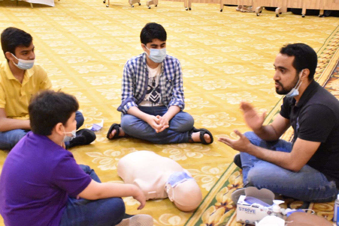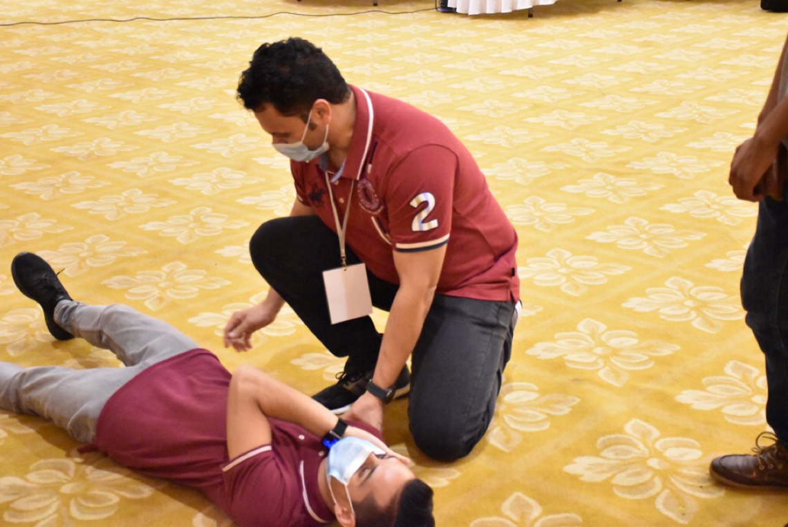 وتضمنت الورشة ثلاث محطات، كانت المحطة الأولى منها تُعنى بكيفية التعامل مع حالات الطوارئ للبالغين، وكيفية الإنعاش القلبي الرئوي عند غياب الوعي وعدم استجابة المُصاب.