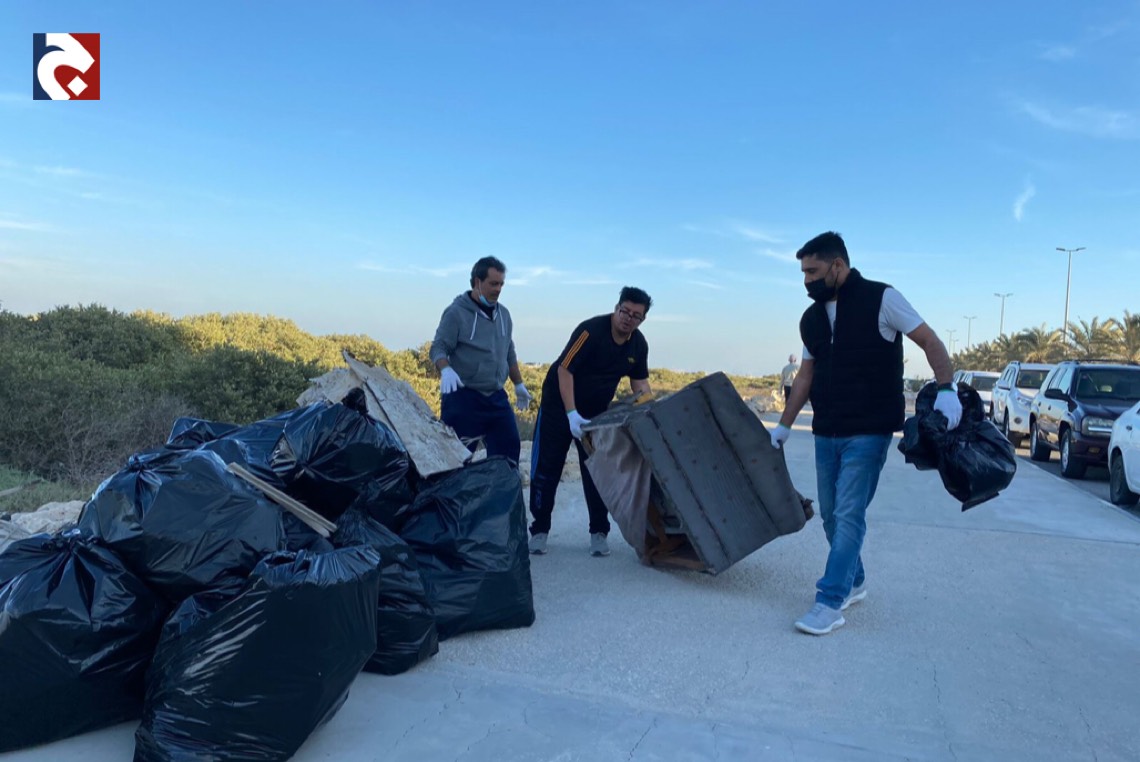 بالصور.. 93 متطوعا ينظفون شاطئ كورنيش سنابس