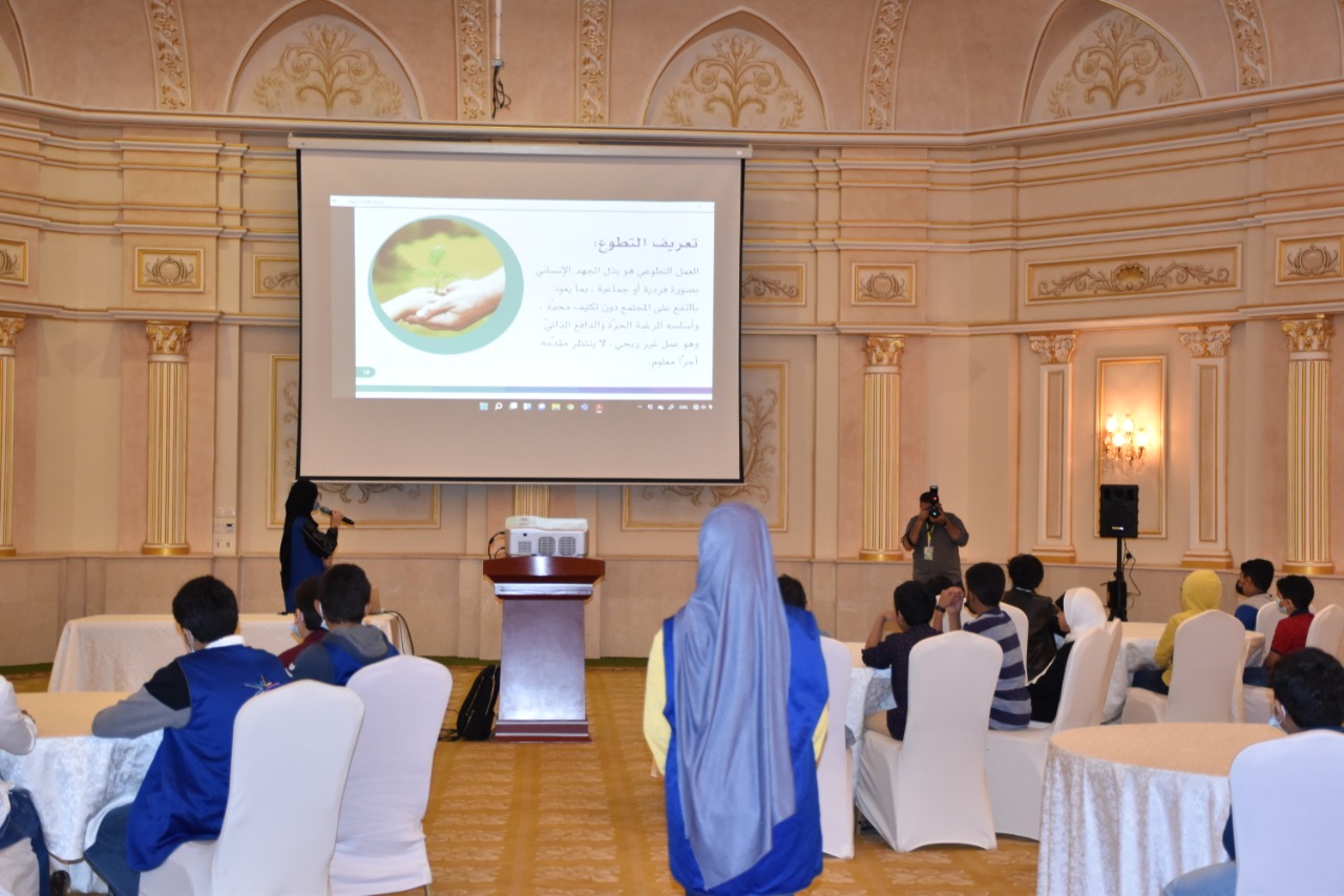 وحملت الورشة عنوان ”التطوع سعادتي“، وبدأت بتأكيد اليافعة آمنة آل حمود على أن عمل الخير يزيد المرء سعادة، تلتها مريم محمود المطرود بتعريف التطوع بأنه بذل الخير لمساعدة المجتمع وتنميته، مبينة جهود المملكة في التطوع وطموحها في الوصول للمليون متطوع.