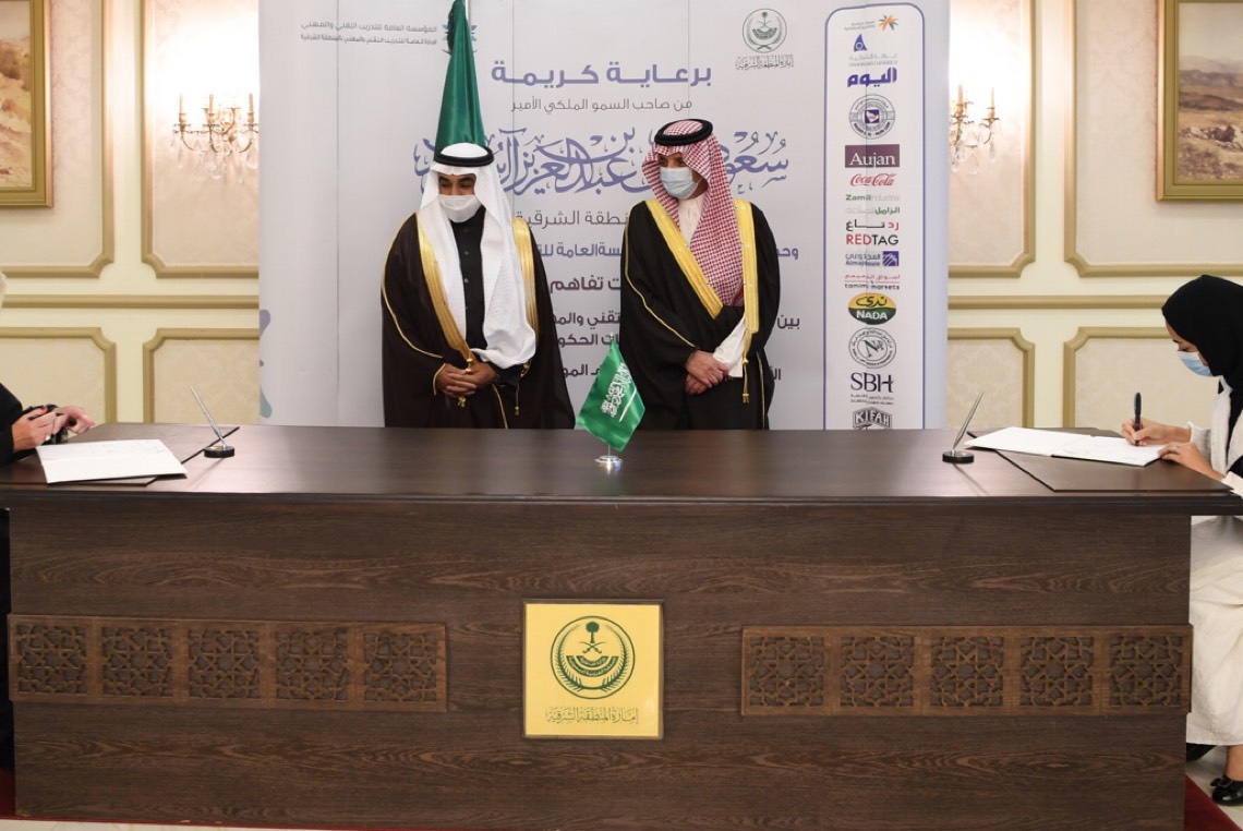 وبارك أمير المنطقة الشرقية وبحضور محافظ المؤسسة العامة للتدريب الفني والتقني الدكتور أحمد الفهيد توقيع 15 مذكرة تفاهم لتوظيف أكثر من 3100 توظيف مباشر من خريجي المؤسسة العامة للتدريب الفني.