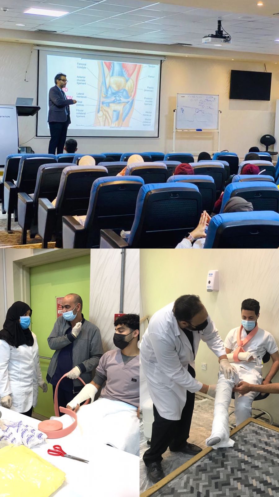 واستهدفت الدورة تأهيل الكادر التمريضي لتقديم رعاية تمريضية شاملة ومتكاملة في تمريض الطوارئ تضمنت ورش العمل إدارة مجرى التنفس وعمل الجبائر.