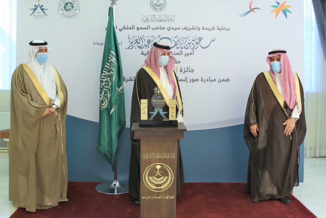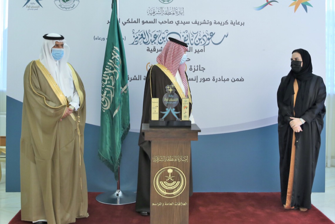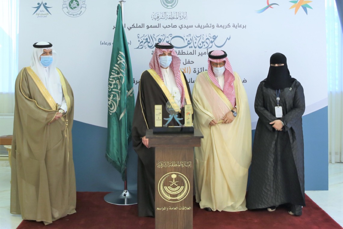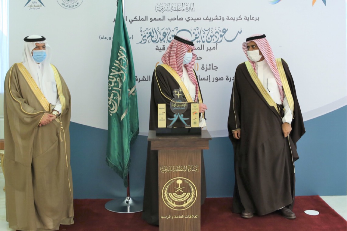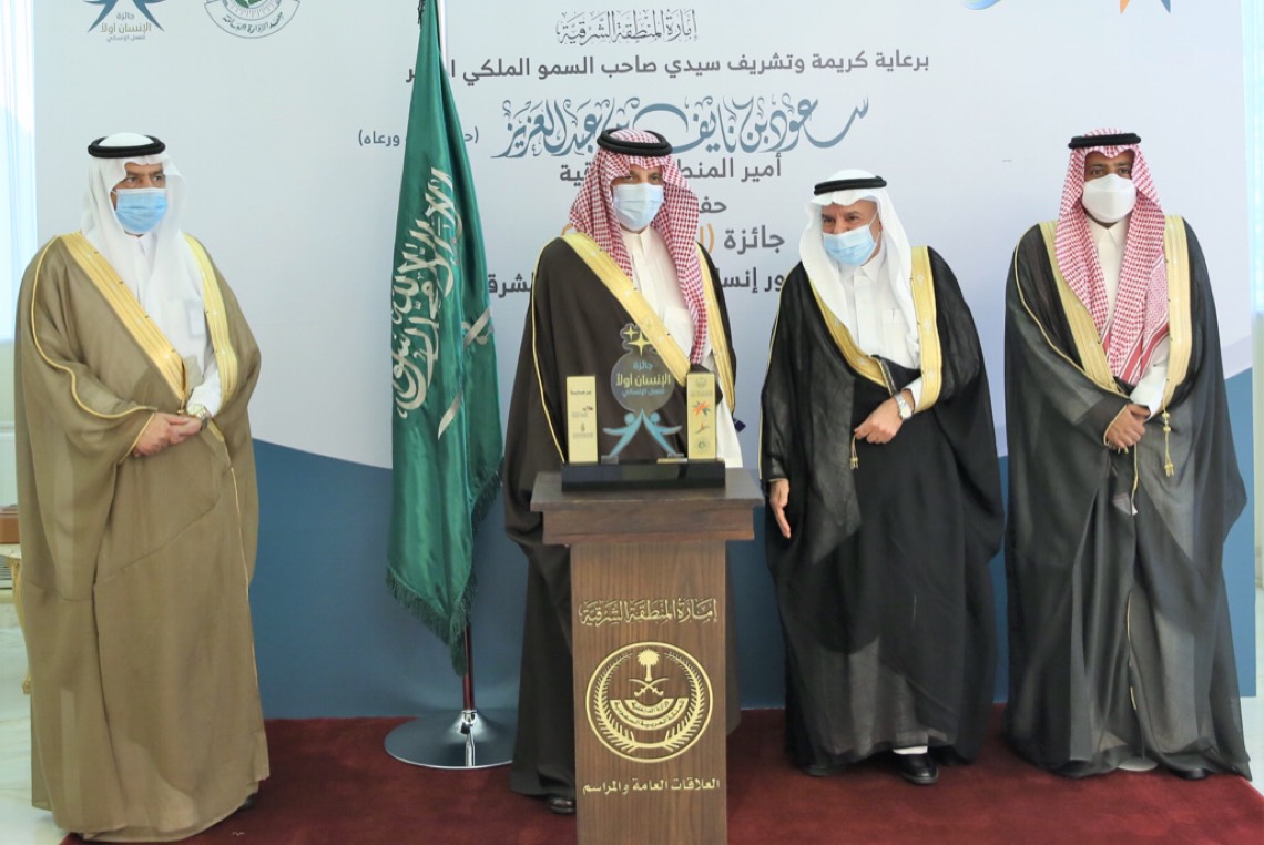 وكرم أمير الشرقية بديوان الإمارة اليوم الإثنين الفائزين بجائزة ”الإنسان أولاً“ للعمل الإنساني بالمنطقة الشرقية 2021 التي انطلقت بالتزامن مع اليوم العالمي للعمل الإنساني وينظمها فرع وزارة الموارد البشرية والتنمية الاجتماعية بالمنطقة.
