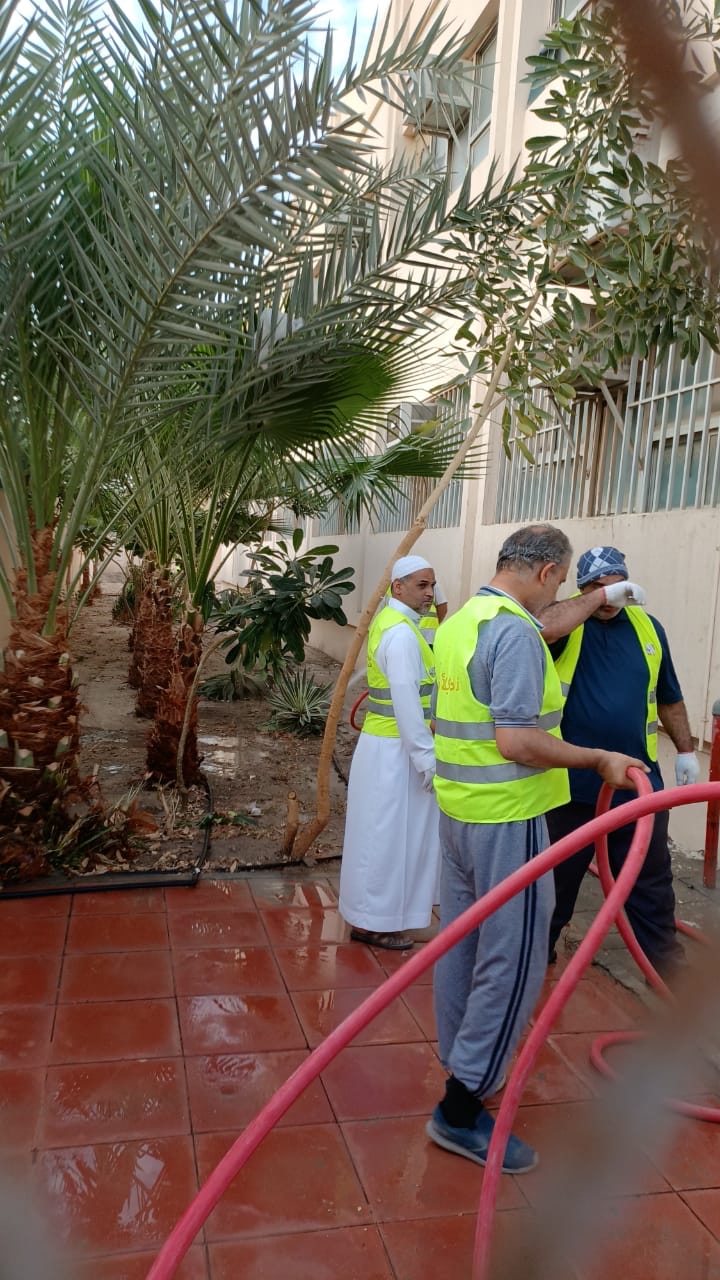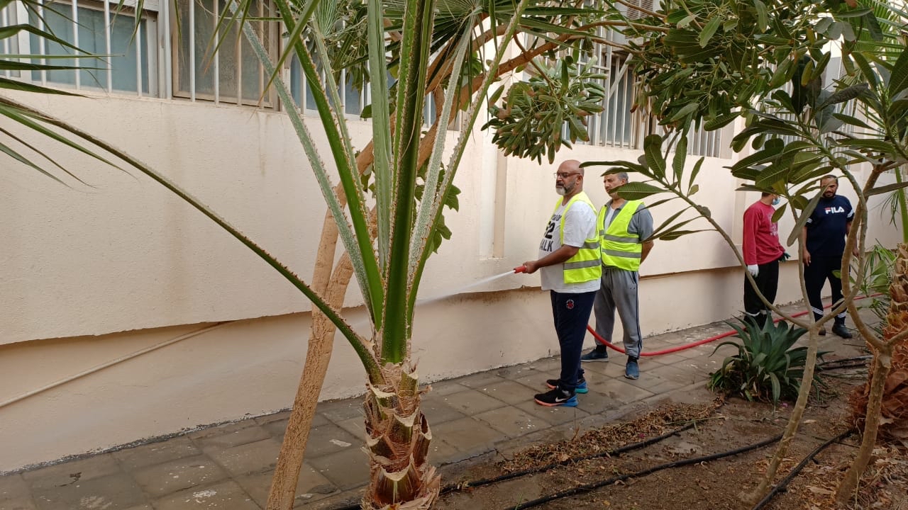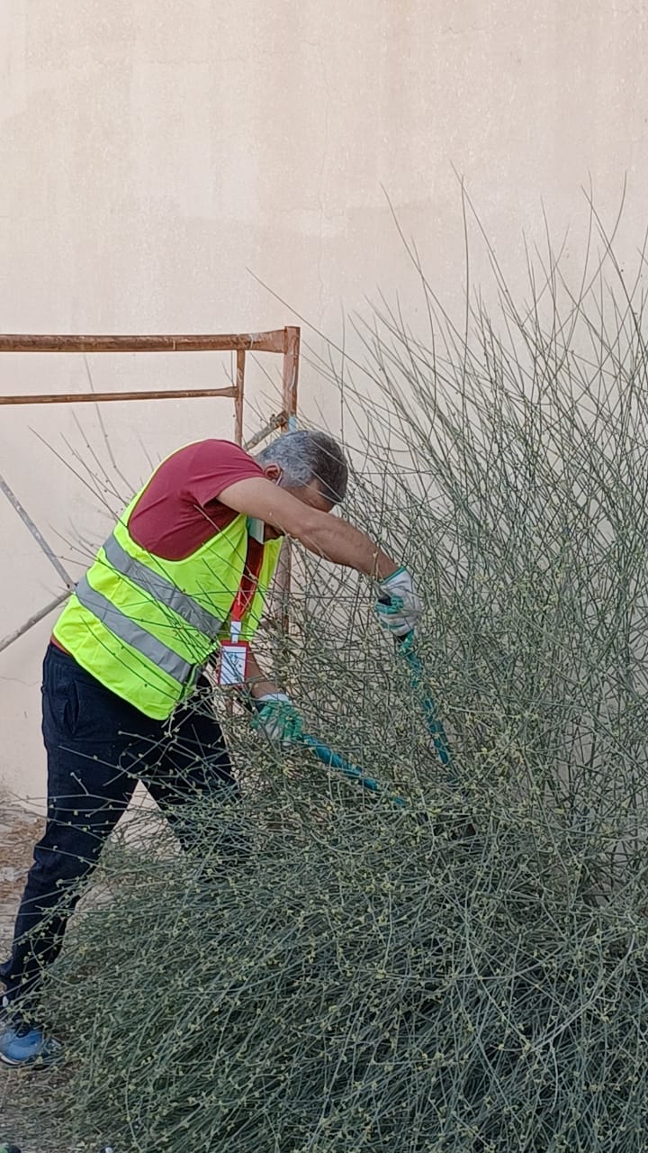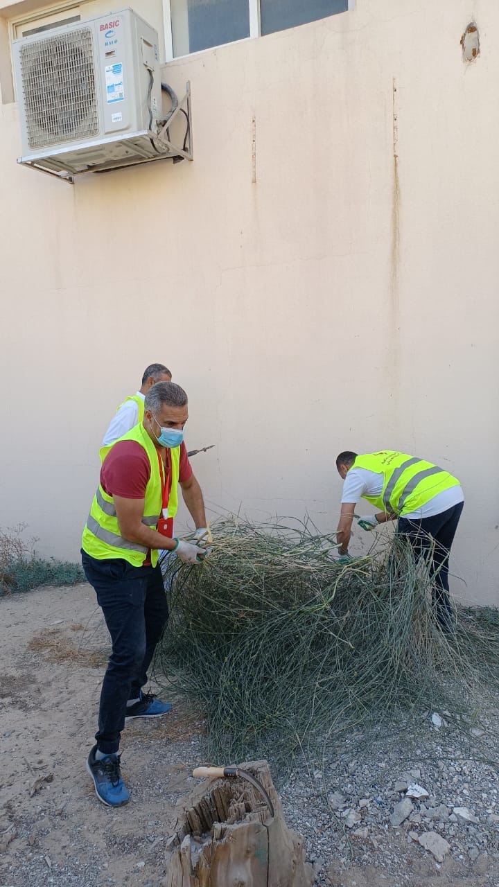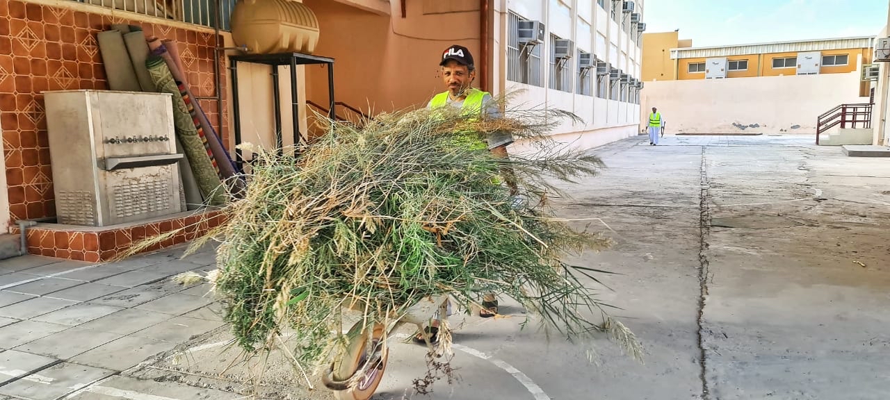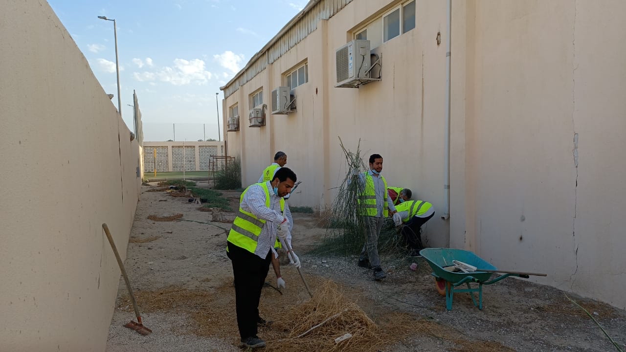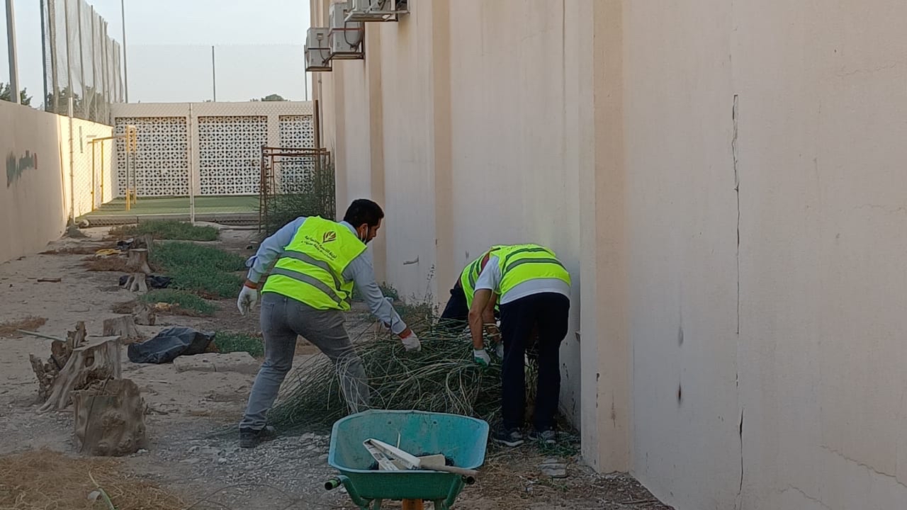 توزع المتطوعون في المبادرة التي حملت اسم ”منسق زراعي“، على مجموعات في تقليم الأشجار وتنظيف النخيل وتنظيف الساحات الزراعية بالمدرسة وتوفير الأدوات المستلزمات الضرورية للعمل.