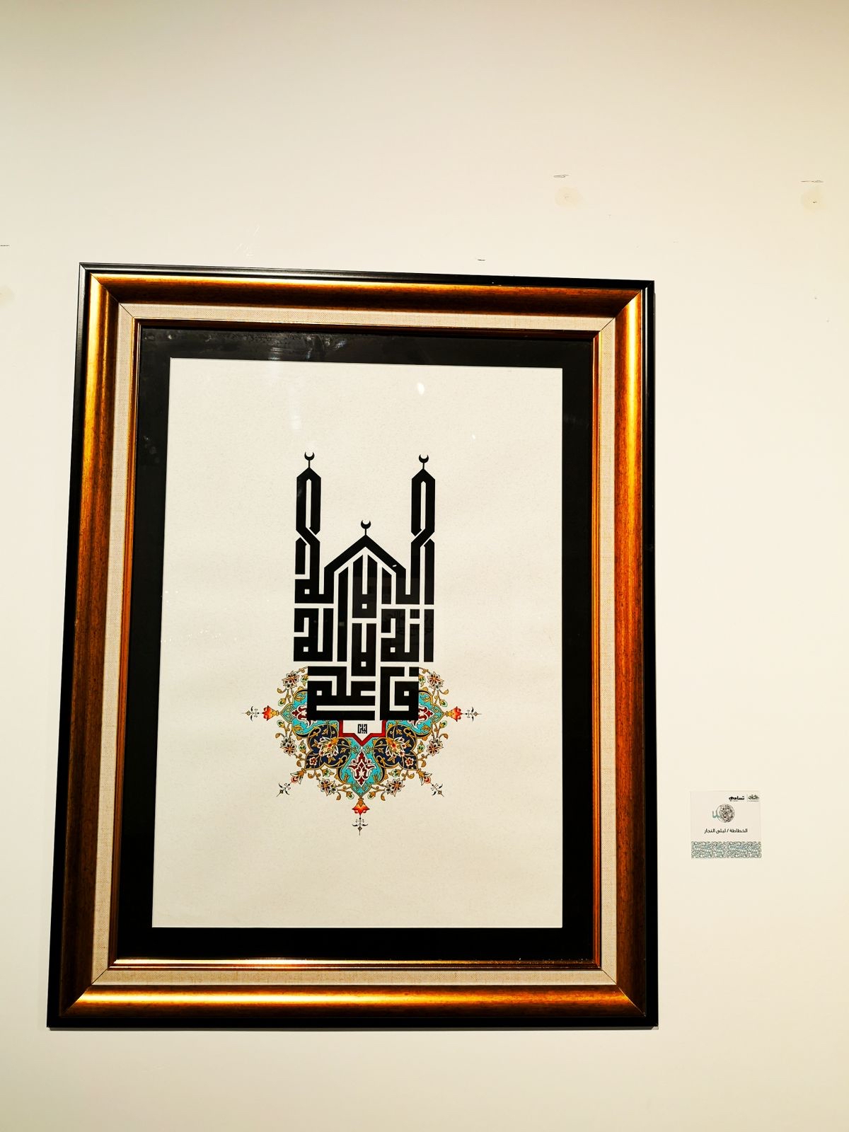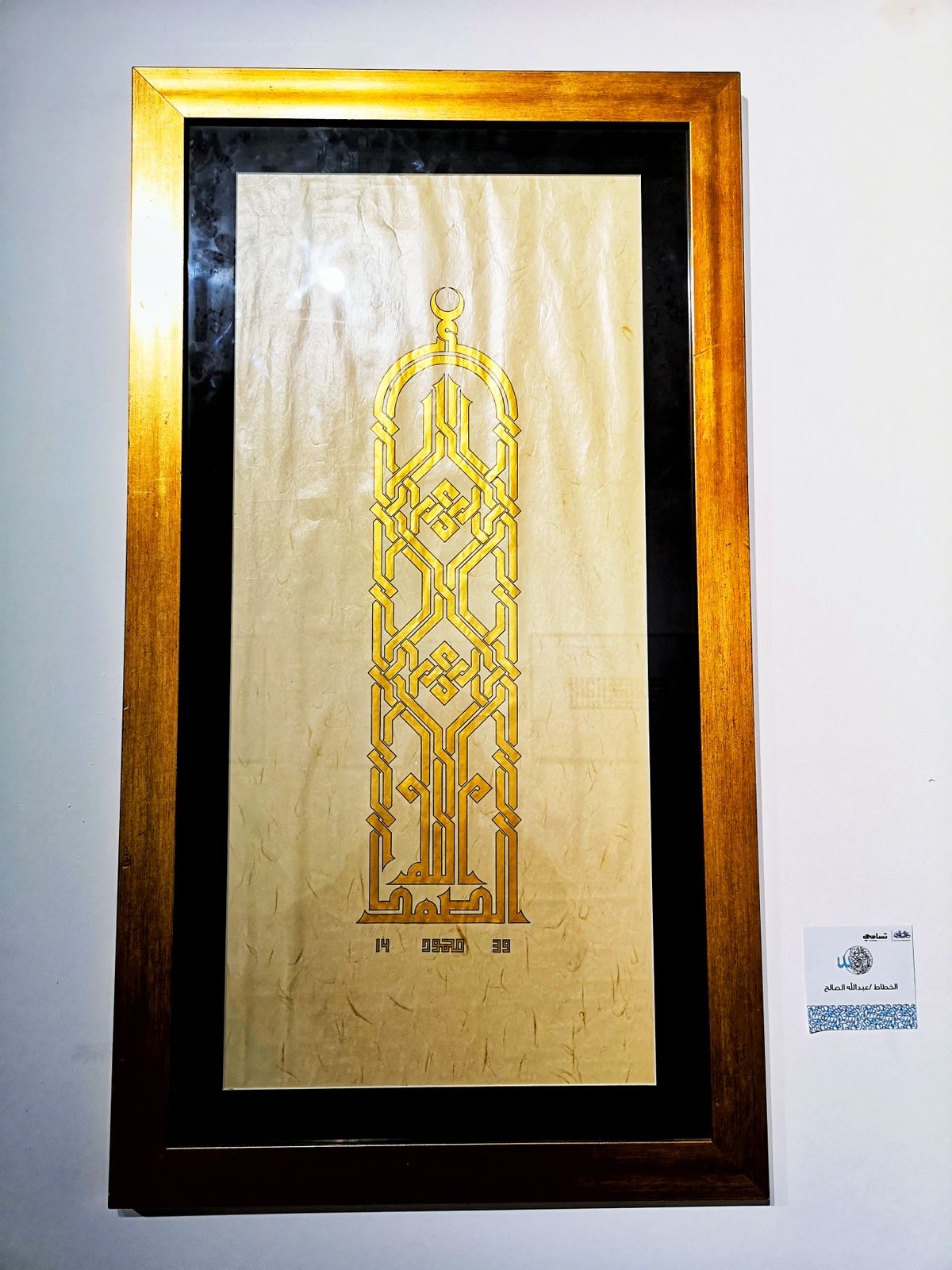 فيما قدم الخطاط عبد الله الصالح لوحة ”الله الصمد“ بالخط الكوفي الفاطمي بتصميم عمودي مذهب.