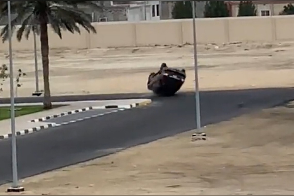فيديو يوثق انقلاب مركبة أثناء ممارسة قائدها التفحيط في عنك