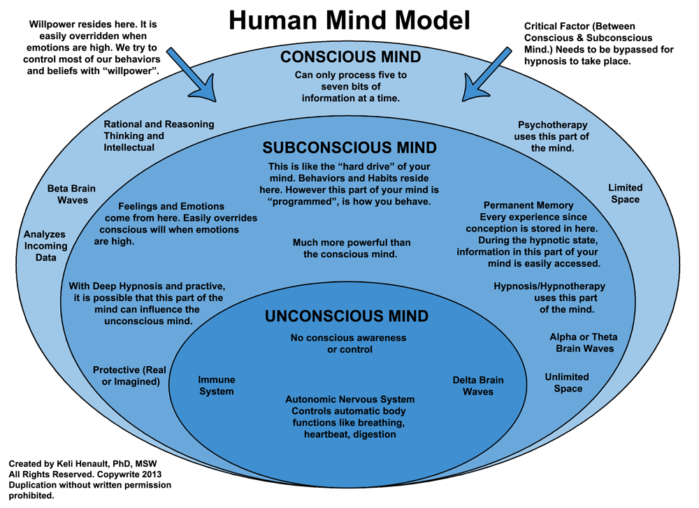 هناك ثلاثة جوانب أساسية للوعي وعلى وجه التحديد العقل الباطن والعقل الواعي والوعي الأعلى ولكل منها دورًا محوريًا في خلق ظروفك، لذا فإن فهم كيفية ترابط الثلاثة أمر أساسي لتسخير قوة عقلك الباطن والتعرف على المقصود بالوعي سيقطع شوطًا طويلاً في تمكينك من إنشاء الواقع الذي تختاره بوعي. الوعي هو أساسا أقوى مورد لديك وتحت تصرفك وعقلك. إنه الجانب الأكثر شيوعًا والأكثر غموضًا في حياتك وبدونها لا يمكنك تجربة الحياة. ويتحكم عقلك الباطن في جميع العمليات الحيوية لجسمك حيث إنه يعرف بالفعل إجابات لمشاكلك ويعرف حقًا كيف يعالجها.