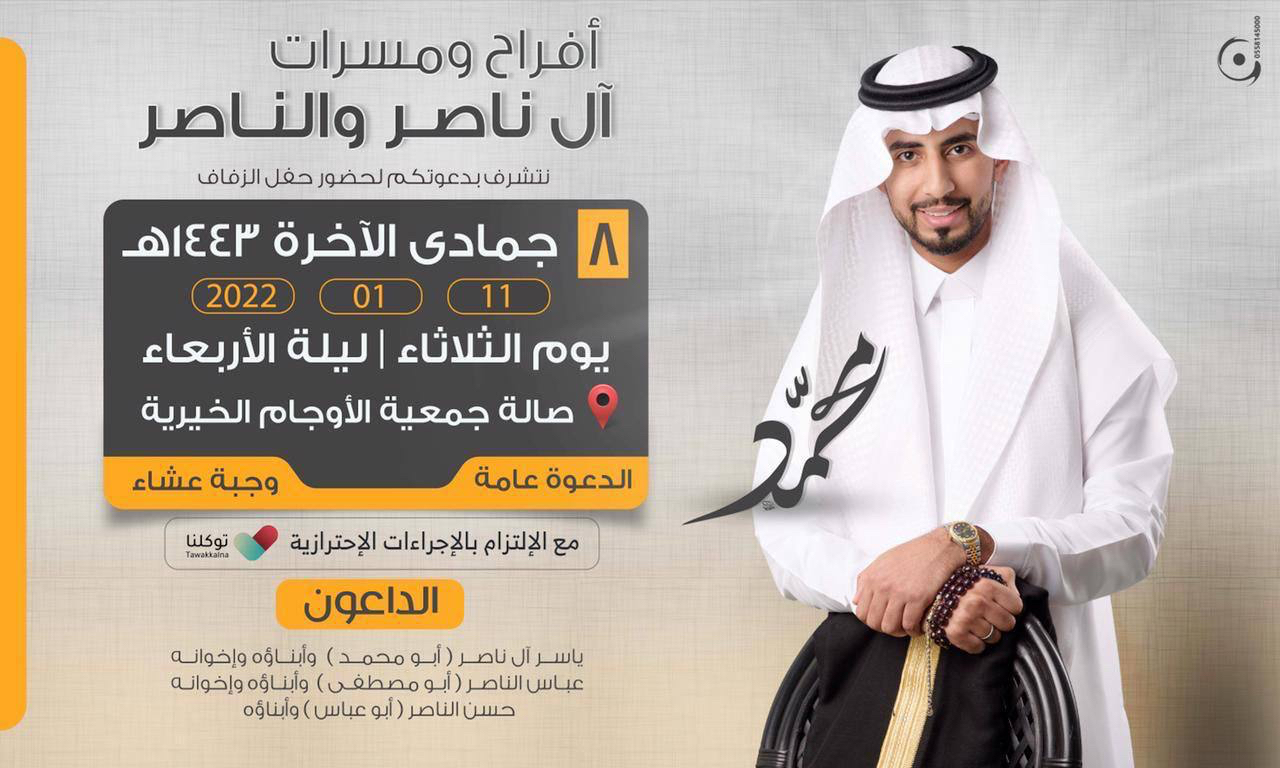 تحتفل عائلة آل ناصر والناصر في الأوجام مساء يوم الثلاثاء بزفاف الشاب محمد ياسر آل ناصر على كريمة الحاج عباس الناصر «أبو مصطفى» في صالة جمعية الأوجام الخيرية وسط فرحة الأهل والأصدقاء ومحبي العريسين.