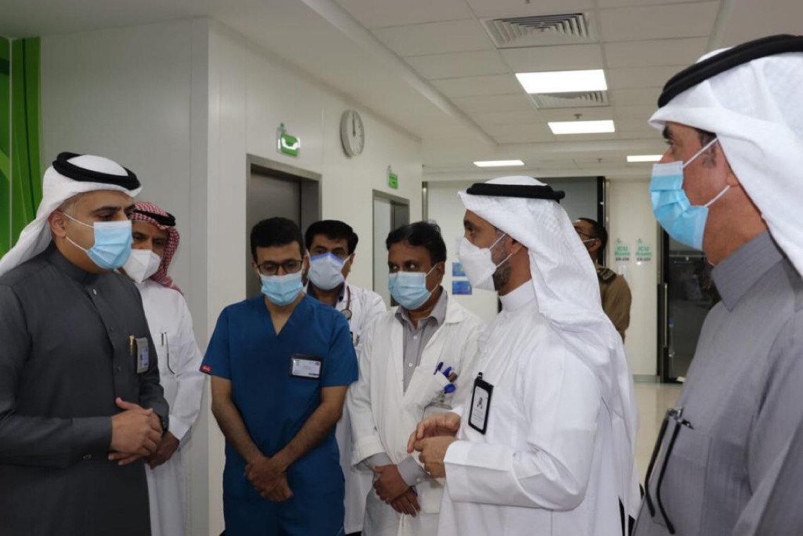 واطلع خلال جولاته التي أجراها بمرافقة رئيس مجلس إدارة تجمع الأحساء الصحي الدكتور أحمد الشعيبي، ووكيل وزارة الصحة للشؤون الهندسية المهندس الوليد العكرش، والرئيس التنفيذي للتجمع الدكتور خالد الملا، على سير العمل.