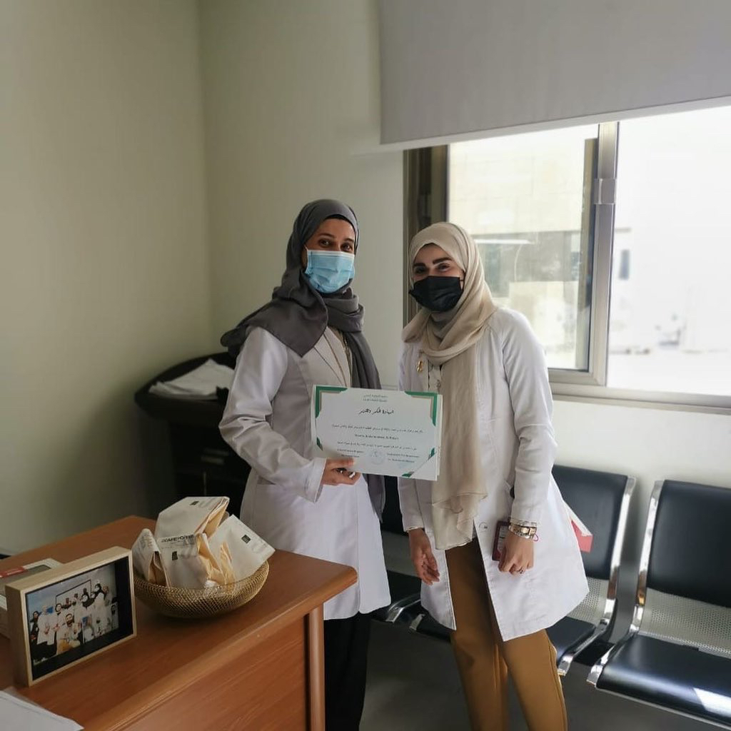 وشاركت الحفل رئيسة قسم النساء والولادة الدكتورة ريم الدوسري ومسؤولة قسم الامتياز الدكتورة فاطمة الزين.