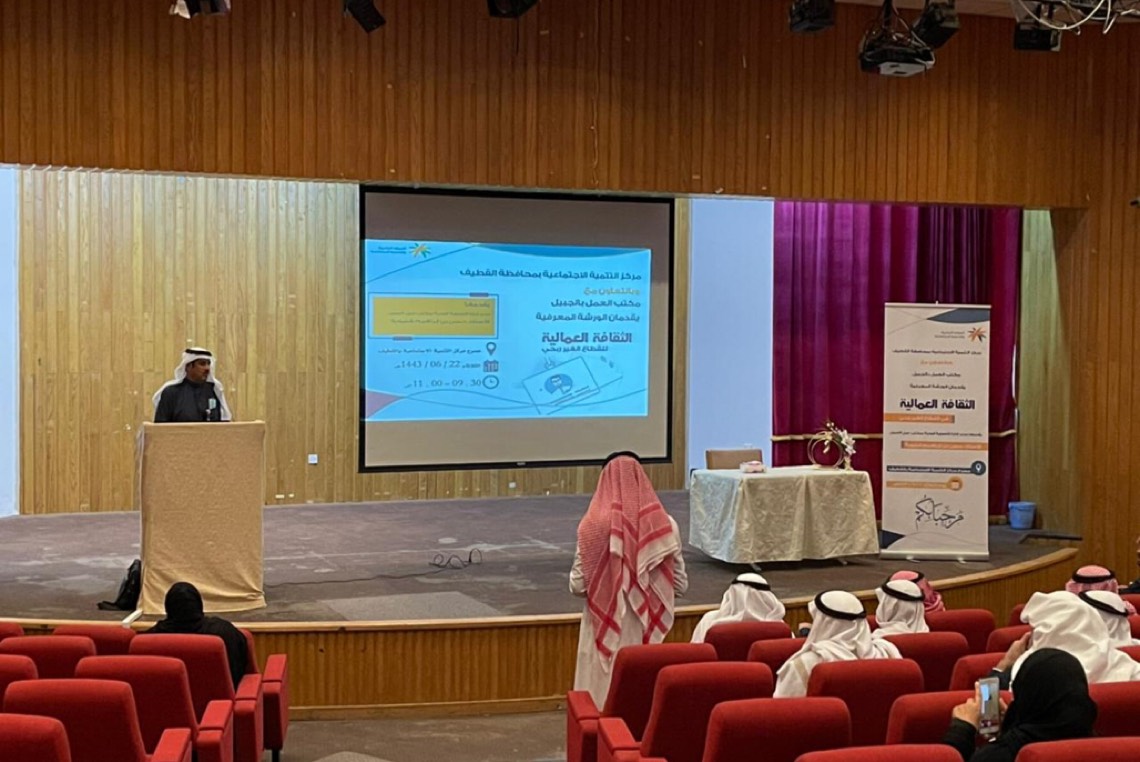 نظم مكتب العمل بمحافظة الجبيل ورشة عمل ”الثقافة العمالية للقطاع غير الربحي“ بالتعاون مع مركز التنمية الإجتماعية بمحافظة القطيف.