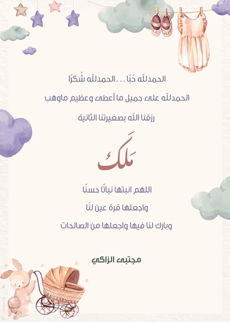 رُزق الشاب مجتبى الزاكي بمولودة اتفق وحرمه على تسميتها «ملك».