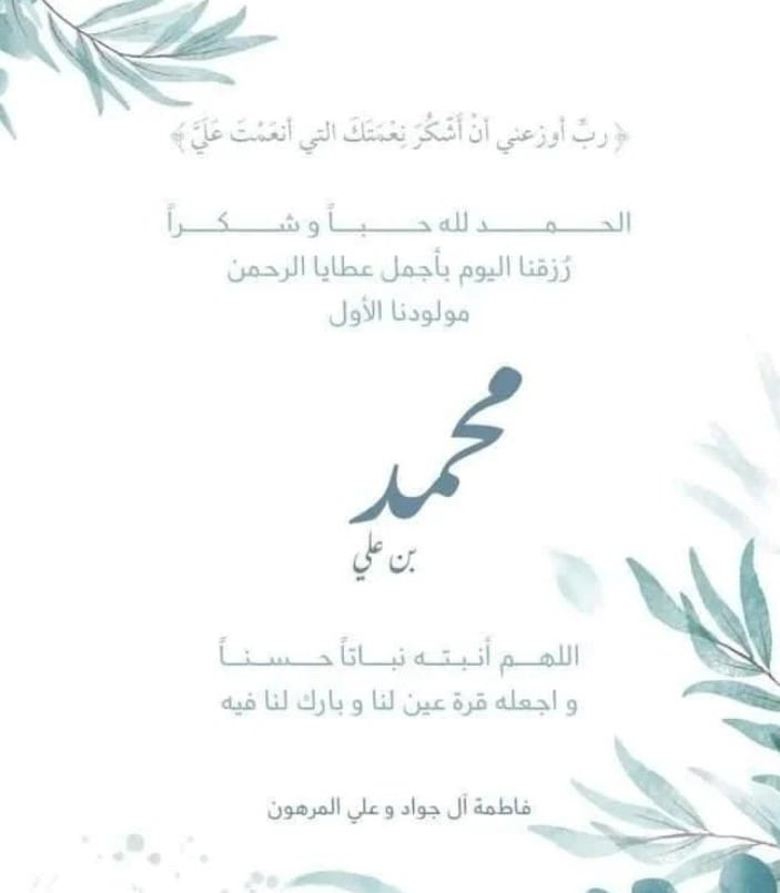 رُزق الشاب علي مالك المرهون بمولود اتفق وحرمه على تسميته «محمد».