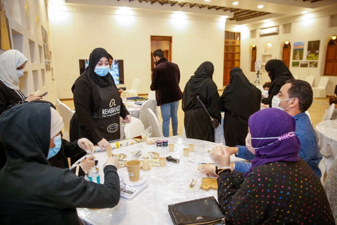 تفاعل زوار معرض عبير الاحساء للفنون التشكيلية مع ورشة العمل التي قدمتها المدربة والفنانة التشكيلية جمانة الشيخ تحت عنوان ”مقدمة في فن الريزن“.