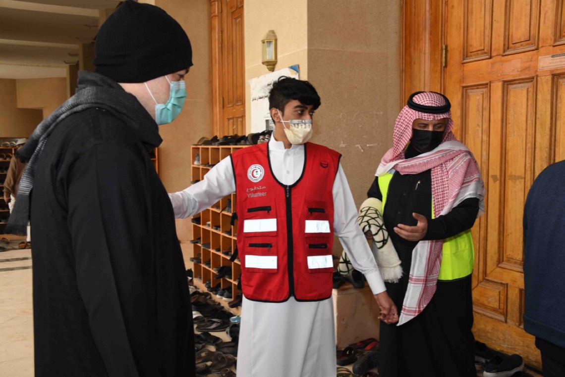 بدوره أبان المشرف والمنسق العام على الفرق التطوعية سعود الشعيبي أن الفرق التطوعية شاركت في إجراء عمليات فرز بصري وقياس العلامات الحيوية للتأكد من سلامتهم قبل دخول للمسجد وتعقيم الأيدي وتطبيق التباعد وتوزيع كمامات للذين يحضرون بدون كمامات.