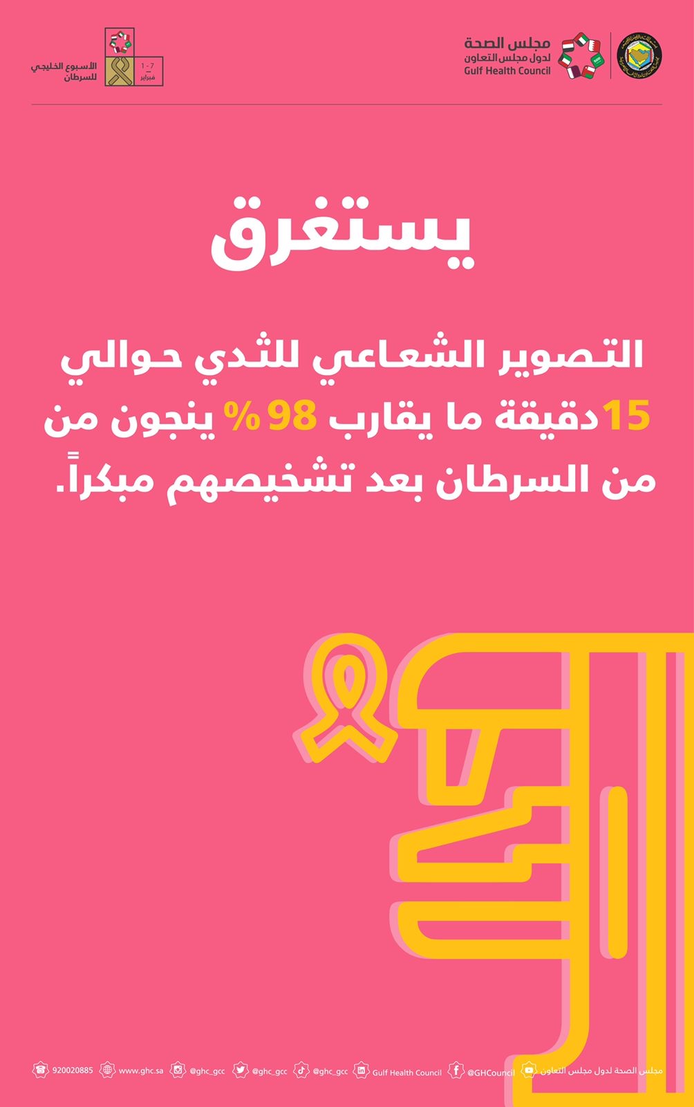 وركز المجلس في حملته أن التشخيص المبكر لاي حالة مصابة بسرطان الثدي قد تساهم بالشفاء منها بما نسبته 98%، وأضاف أن عمل أشعة الماموغرام للثدي للكشف عن أي حالة يستغرق زمناً بسيط لا يتجاوز 15 دقيقة، وهذا يشجع على الاقبال على الفحص وعدم الترخي في التوجه لمراكز الفحص المتخصصة.
