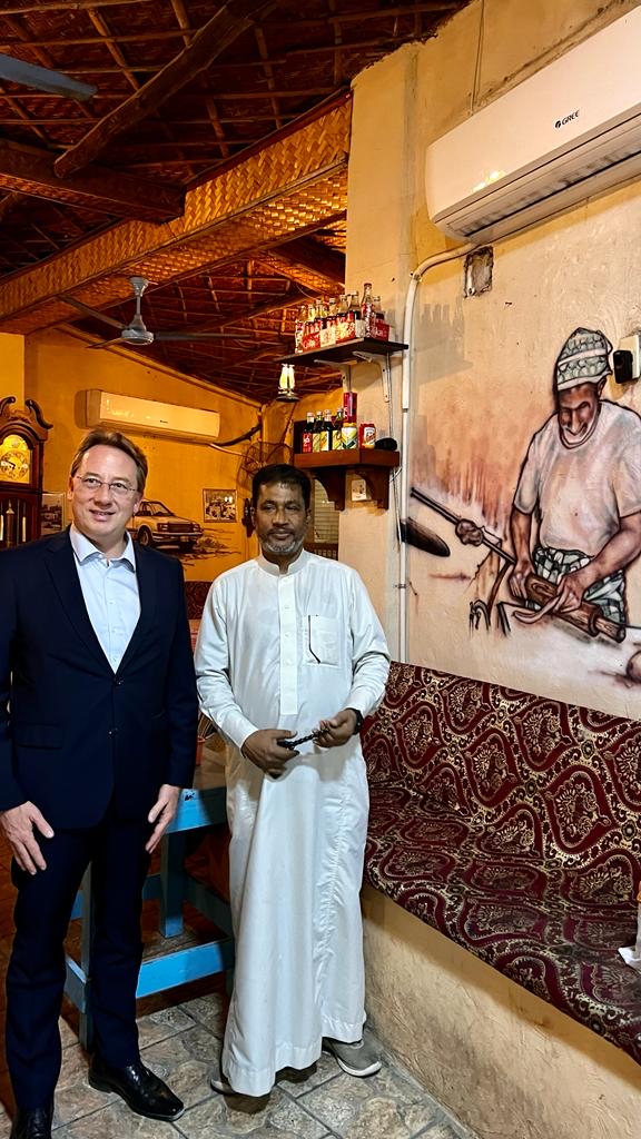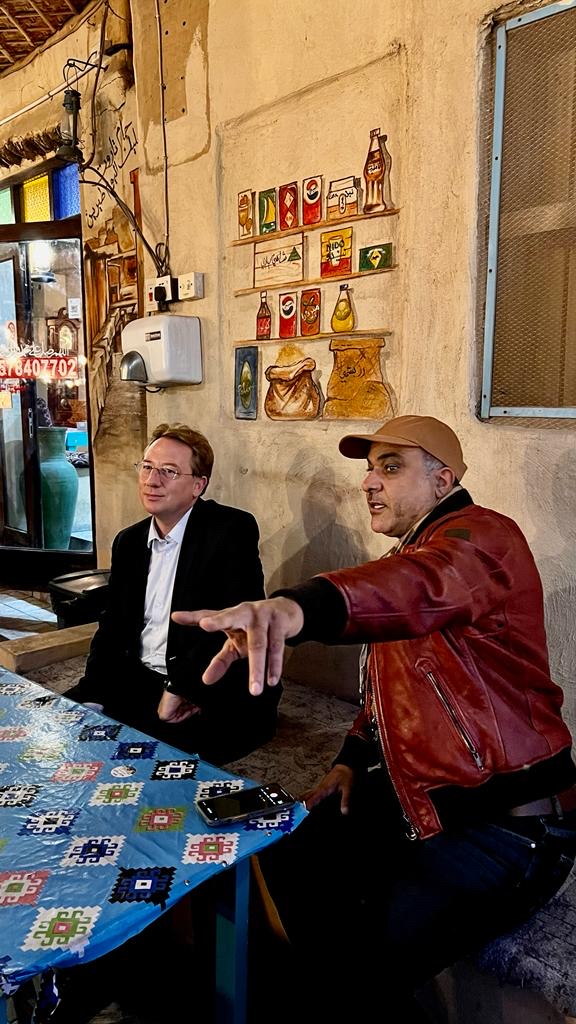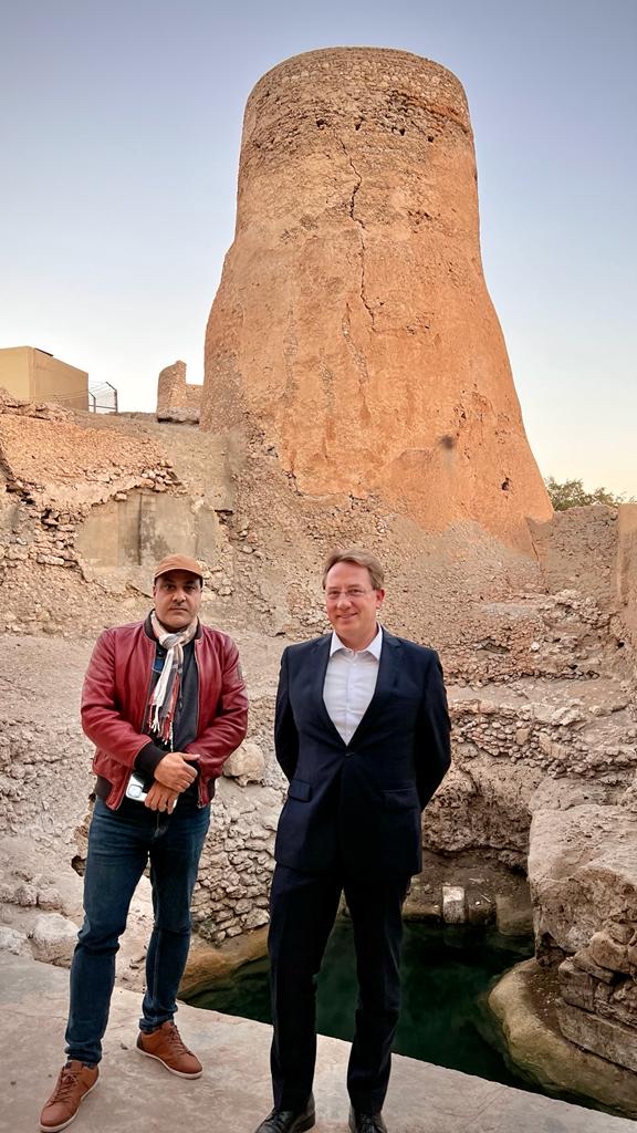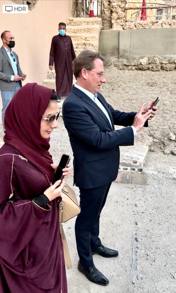 جاء ذلك بحضور الفنان زمان جاسم، والفنانة فاطمة النمر، حيث وصف القلعة بأنها من التراث العالمي، وأخذ جولة في البيوت المجاورة للقلعة وقهوة تاروت التراثية.