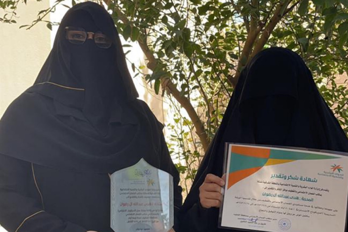 واختتمت الورشة بعمل معرض لما تم تعلمه وتطبيقه من الورشة لجميع اعمال المستفيدات وبجولة على المعرض من قبل نائب مدير المكتب ومساعده ورئيسة القسم النسائي بمعية فريق التمكين وعدد من منسوبي ومنسوبات المكتب وبتقديم شهادة حضور لكل متدربة وشهادة ودرع تذكاري مقدم من إدارة المكتب للمدربة مثمنين جهودها ومساهمتها الفاعلة في تأهيل المستفيدات وبإلتقاط الصور التذكارية.